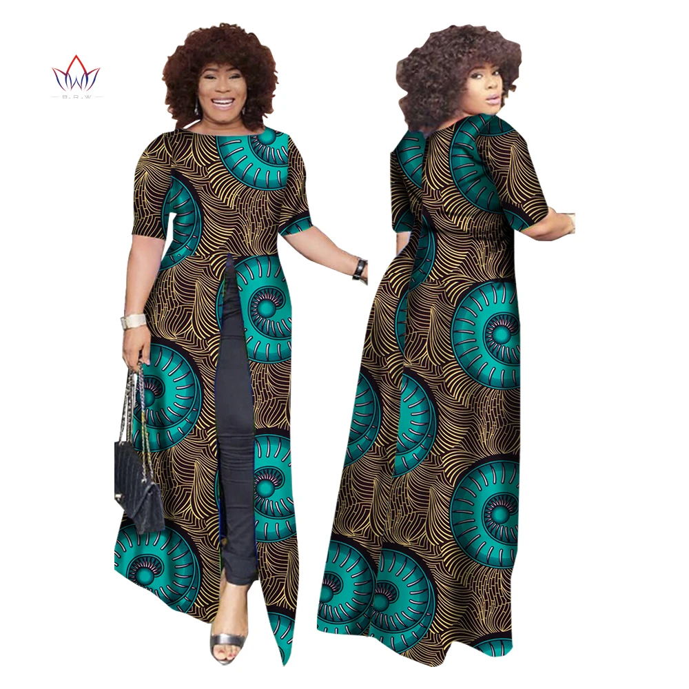 African Dashiki African Dresses Casual Straight Split Printing African Print Cotton Clothing Chemise Africaine Femme BRW WY852