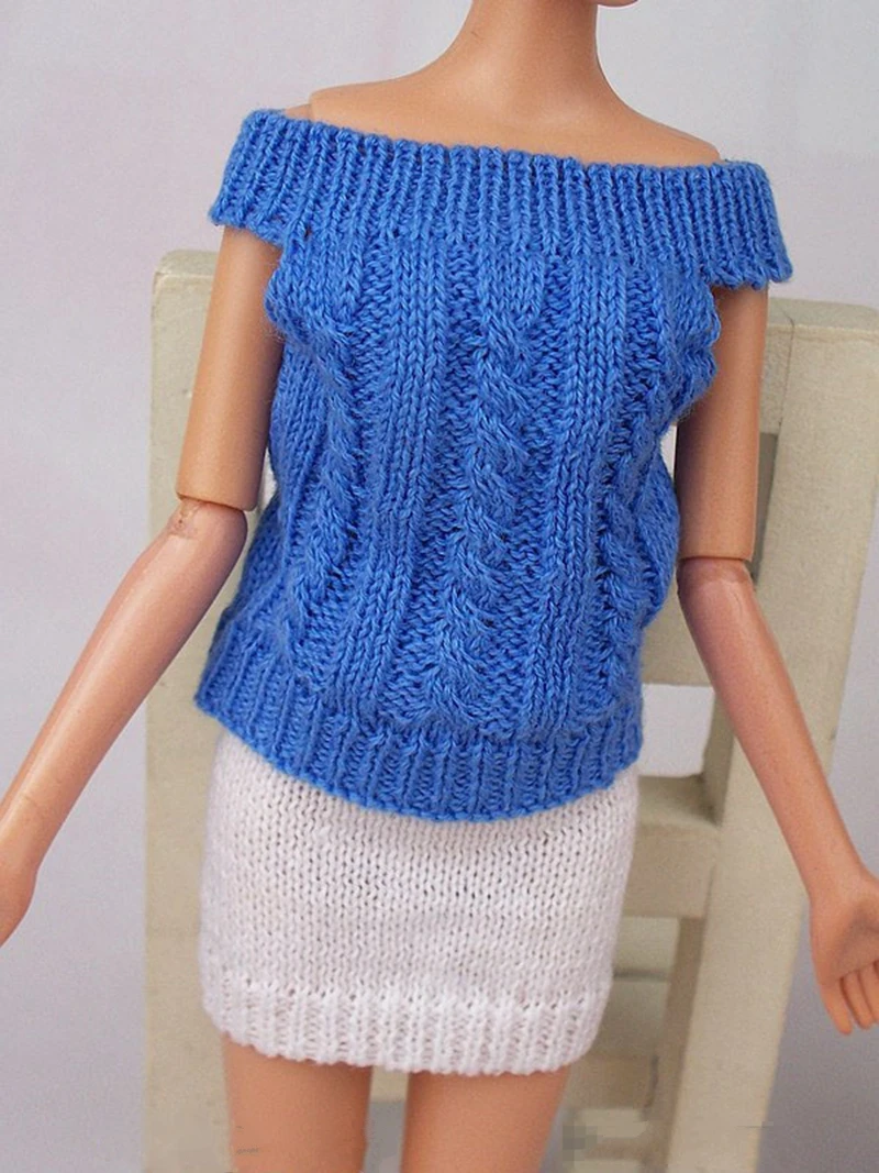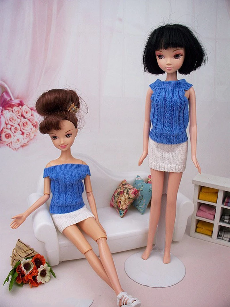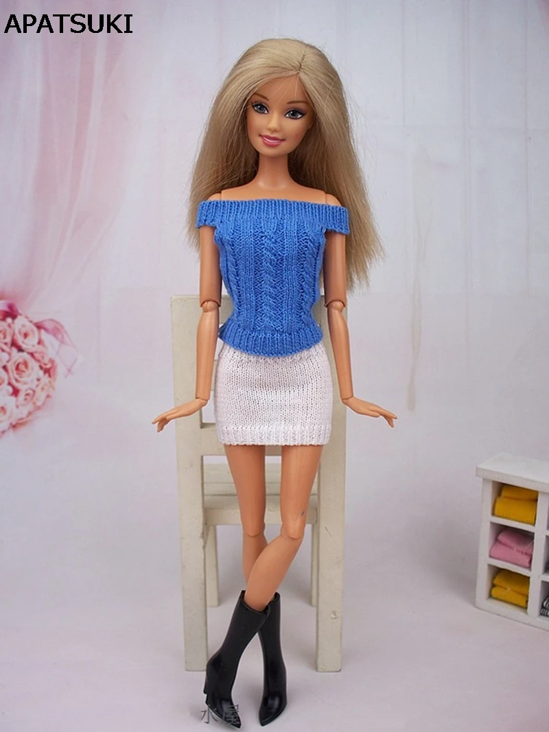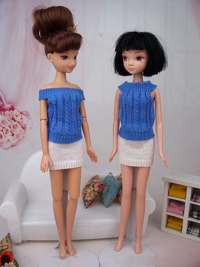 Высококачественные Аксессуары для кукол ручной работы, трикотажная одежда с голубым верхом и белой юбкой, одежда для кукольного домика Барби для куклы 16 BJD