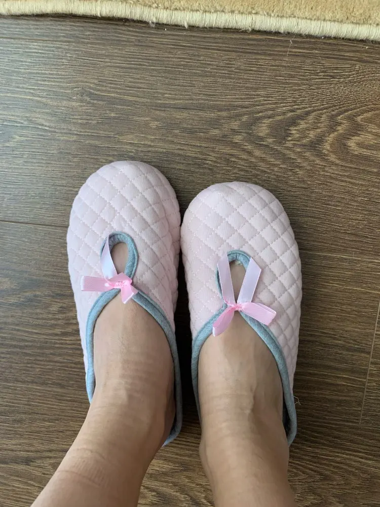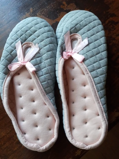 Тапочки неплохие, но подошва не резиновая, меня это расстроило. По фото из отзывов у кого то подошва резиновая, у кого то тряпичная. Тут видимо как повезёт. У меня на полу ламинат и плитка, скользко ходить, а с лестницы вообще опасно в таких спускаться. Поэтому продавцу надо указать из какого материала подошва