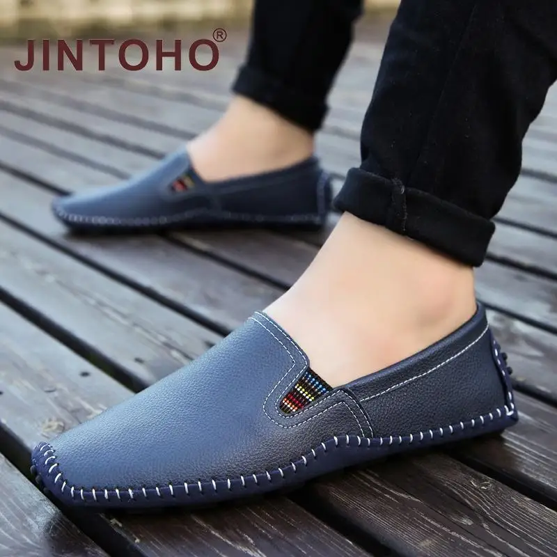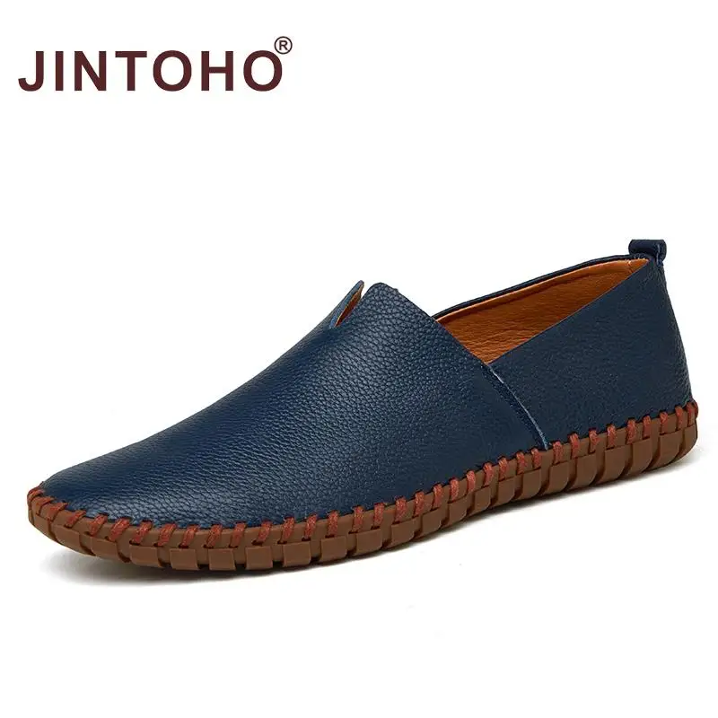 Jintohoбольшой Размеры Мужские туфли из натуральной кожи слипоны черная обувь из натуральной кожи мокасины мужские мокасины итальянские дизайнерские туфли