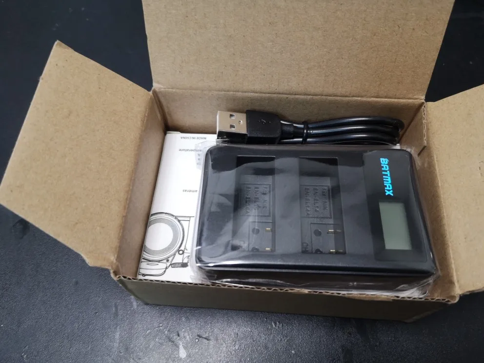 Отличная зарядка. Совсем маленькая и разместить ее можно где угодно и при желании взять с собой и зарядить батарейки от powerbank. Две комплектные батарейки отличный бонус. Теперь есть 4 батарейки в запасе. Индикация заряда крупная и легко читается в темноте. Инструкция в комплекте с описанием на Английском. В целом доволен)))