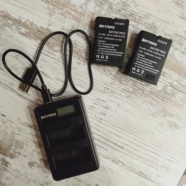 Купил 11.11. Заказ пришел на почту в Киев 01.12. Подходит для Никон Д5100. Проблем при использовании данных аккумуляторов не было. Можно оригинальный аккумулятор заряжать в зарядке Batmax. Зарядка в комплекте только со шнуром usb. Оригинальный аккумулятор EN-EL14 7,4V 1030mAh С продавцем не общался. Упаковано в простой полиетиленовый пакет. Картонная коробка немного помялась при доставке. Сам товар целый. В работе уже проверю на сколько их хватит по времени съемки.