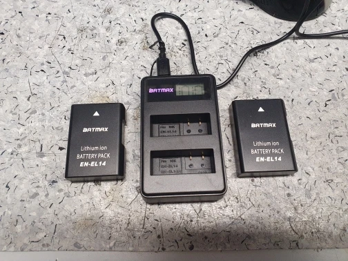 Товар соответствует описанию. Заказ доставлен в срок СДЕКом. Зарядное отличного качества, аккумуляторы в гнездах не болтаются, заряжены были на 25 процентов. Полная зарядка составила 2 часа. Вес аккумуляторов на 3 грамма легче родных. Фотоаппарат не ругался, принял как родные. На сколько хватит отпишусь позже. Поставщика рекомендую.