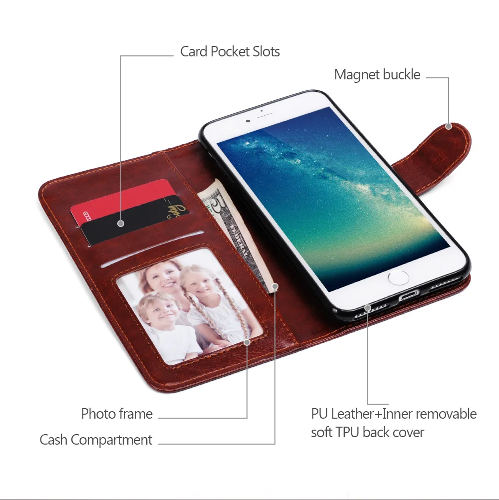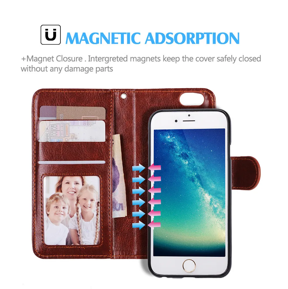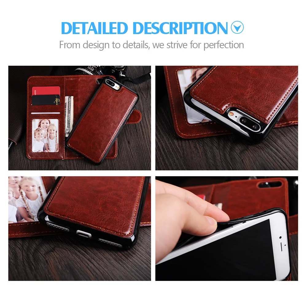 Чехол для iPhone 7 Plus роскошный Магнитный кошелек 2 в 1 съемный откидной кожаный чехол для iPhone 7 6 6S Plus чехол со шнурком и слотом для карт