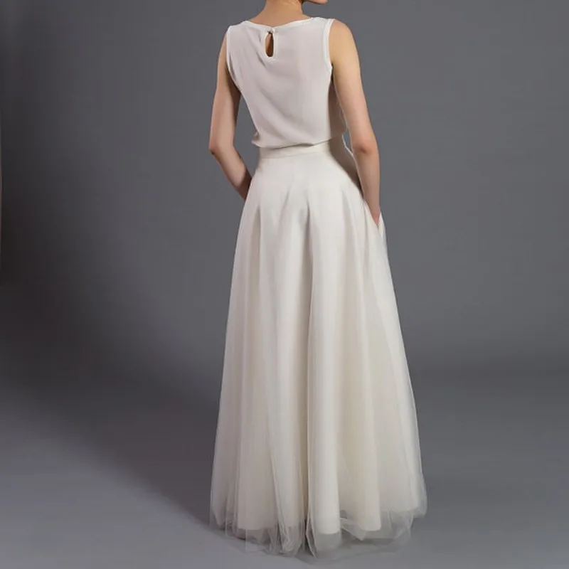 2021 элегантные длинные юбки из Мягкого Тюля с карманами, Высококачественная юбка-пачка в пол, Женская юбка на молнии для свадебной вечеринки