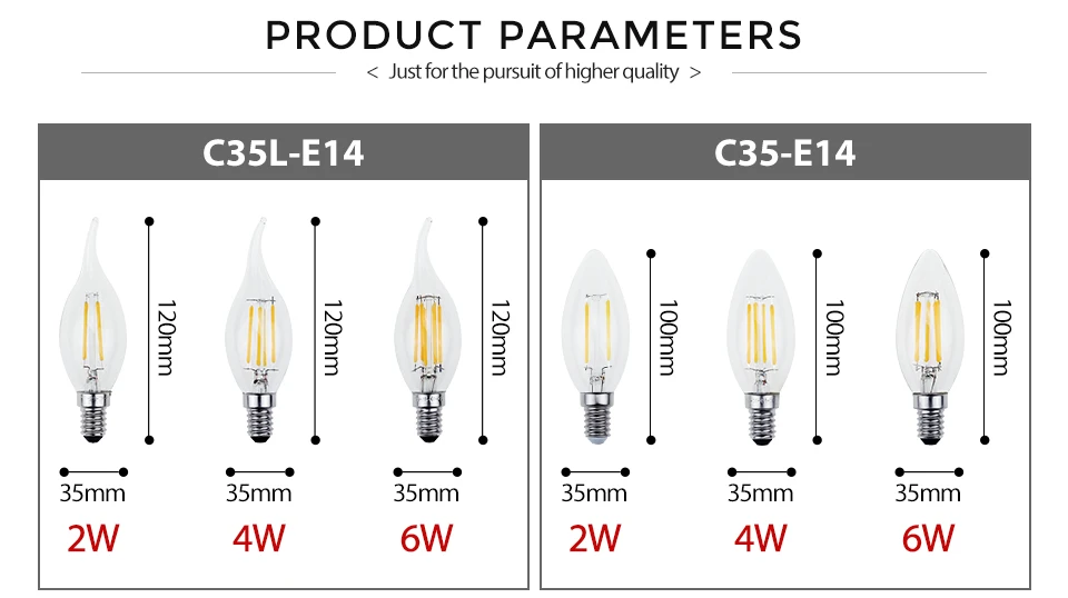 Светодиодный светильник Эдисона в старинном стиле, E27, E14, светодиодный светильник накаливания, настоящий Ватт, 2 Вт, 4 Вт, 6 Вт, винтажный светодиодный светильник, 220 В, Ретро стиль, свеча, светильник, булХарактеристики: