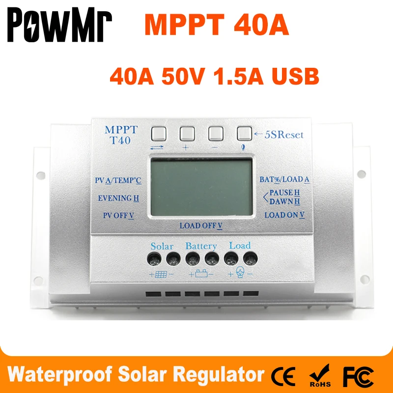 40а солнечный регулятор заряда 12В 24В авто с 5В 1,5а USB выход светильник нагрузки и таймер управления панели солнечных батарей регулятор жк-T40-S
