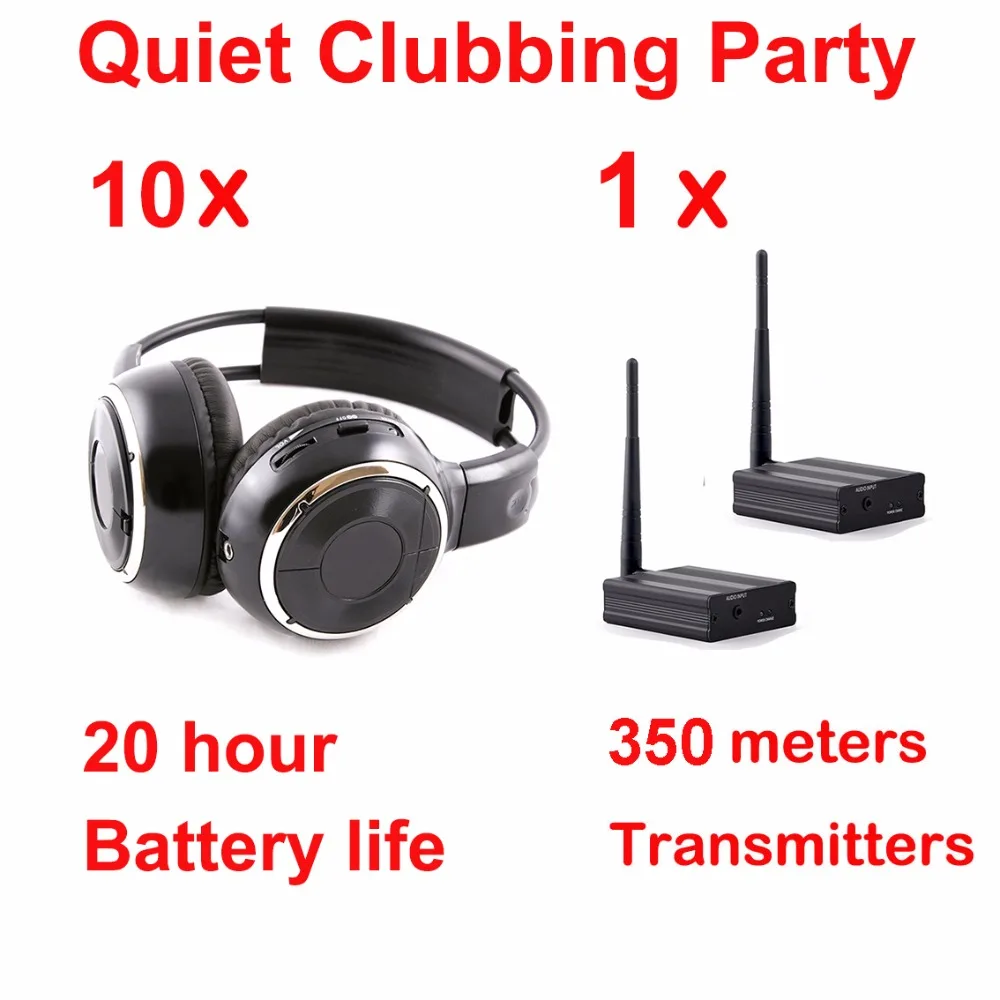 Бесшумная диско полная система черные складные беспроводные наушники-тихий набор клубных вечеринок (10 наушников + 1 передатчик)