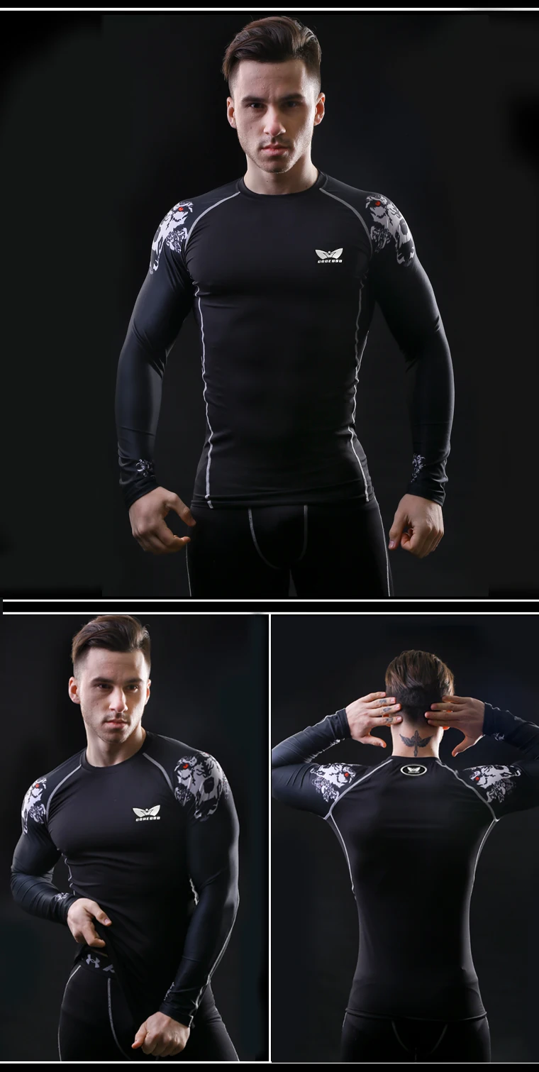 2018 Мужская компрессионная футболка с круглым вырезом и длинными рукавами с 3D принтом животных, MMA Rashguard, колготки, мужские футболки COCEDDB
