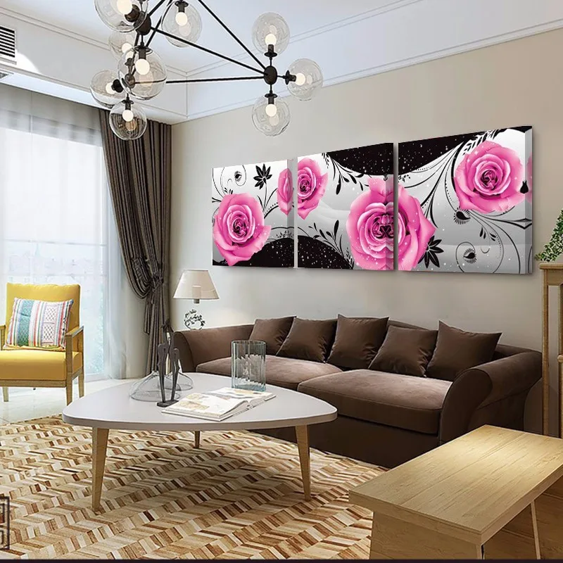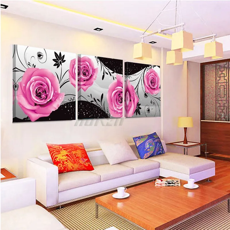 Без рамки роза цветы 3 предмета стены холст картины Домашний декор Современные настенные картины на холст картины с печатным рисунком таблицы HY35