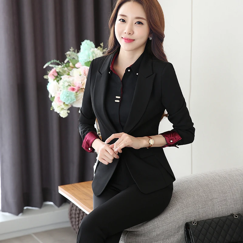 Женский Деловой брючный костюм, черного цвета, блейзер для работы, осень