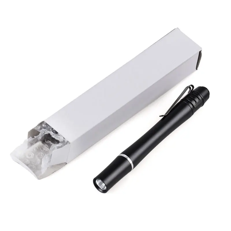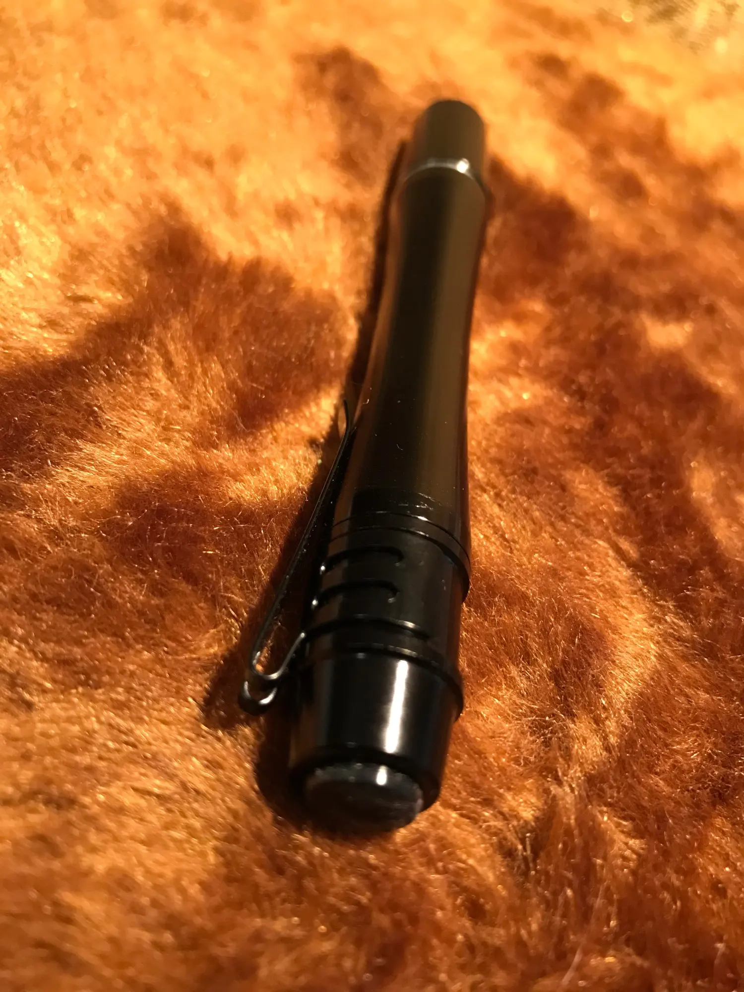 слабое свечение может из за батарейки длина 9см упаковка отличная корпус металический