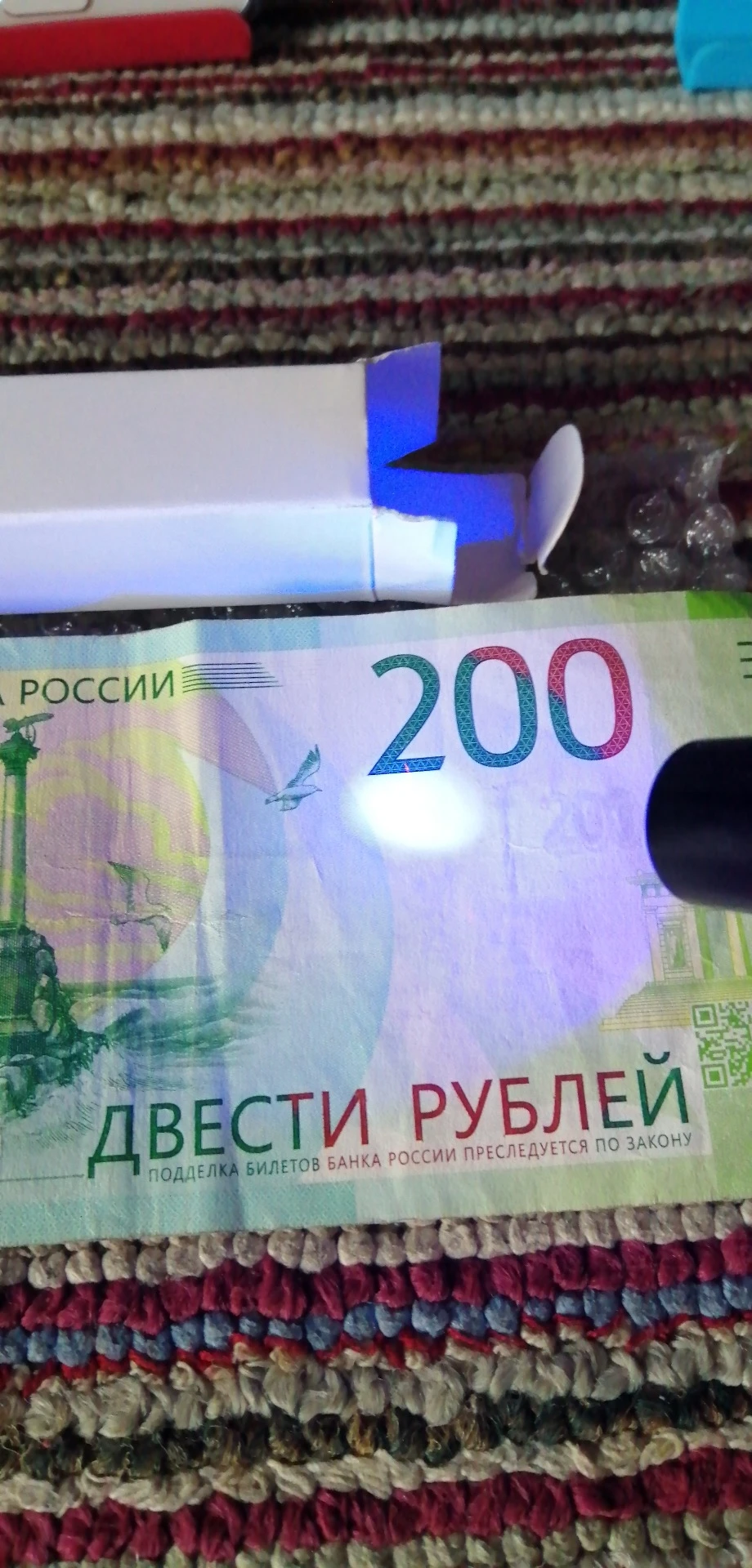 Качество хорошее. Светит не очень сильно. Некоторые знаки на купюрах видно не очень хорошо, но деньги проверить можно. Хорошо засвечивает органику.