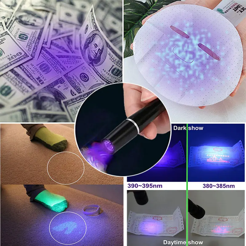 Фонарь неплохой, заказал 365 нм светит темнее по сравнению с 395нм.