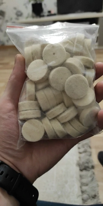 Фетр супер, очень хорошо качества,плотный с пробитым центром,что встречаются очень редко. Огромное спасибо продавцу, из за карантина, посылка с первого раза не доехала до Украины.За это время ,товар поднялся в цене,но продавец отправил по старой.