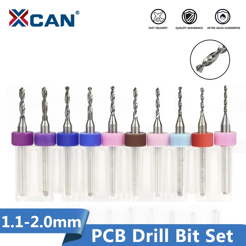 Набор сверл XCAN 1,1 мм-2,0 мм импортные, карбидные для печатной платы, 10 шт.