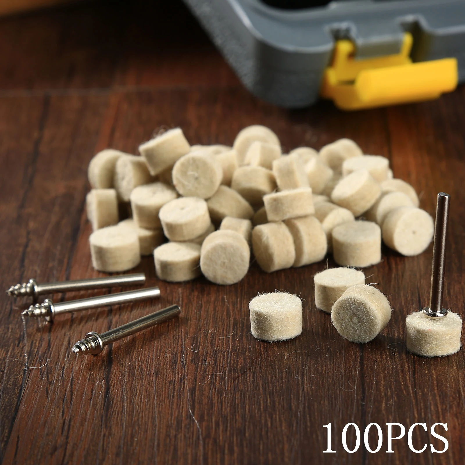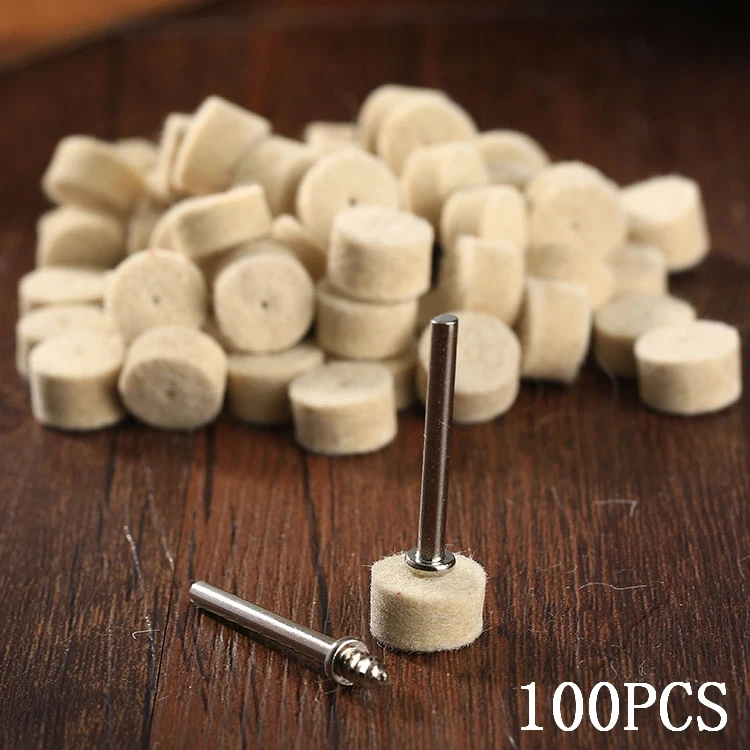 Аксессуары для Dremel, 100 шт., полировальное колесо из шерстяного войлока 13 мм, блестящее полировальное колесо, хвостовики 3,2 мм для вращающегося инструмента Dremel, 4 шт.