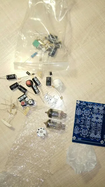 complete DIY kit incl. the valves. No manual or further documentation included. The double sided pcb is made of very good quality and the components are including the both 6j1 tubes as shown on the pictures and all components are very reasonable quality. The 470 uf capacitors are 50 Volt. I want to use this kit as part of a complete pre amplifier and combine it with a 4 channel input selector with relais which you can find in several shops on aliexpress . I will upgrade the potmeter for an Alps or simular and probably upgrade the 4pcs 1 uF capacitors in the audio circuit for better ones. All was send in 8 days to Holland (fastest delivery ever) and packiging was very well. I look forward to build the complete pre amp (after finding the right housing). Very good price ! thank you! ☺