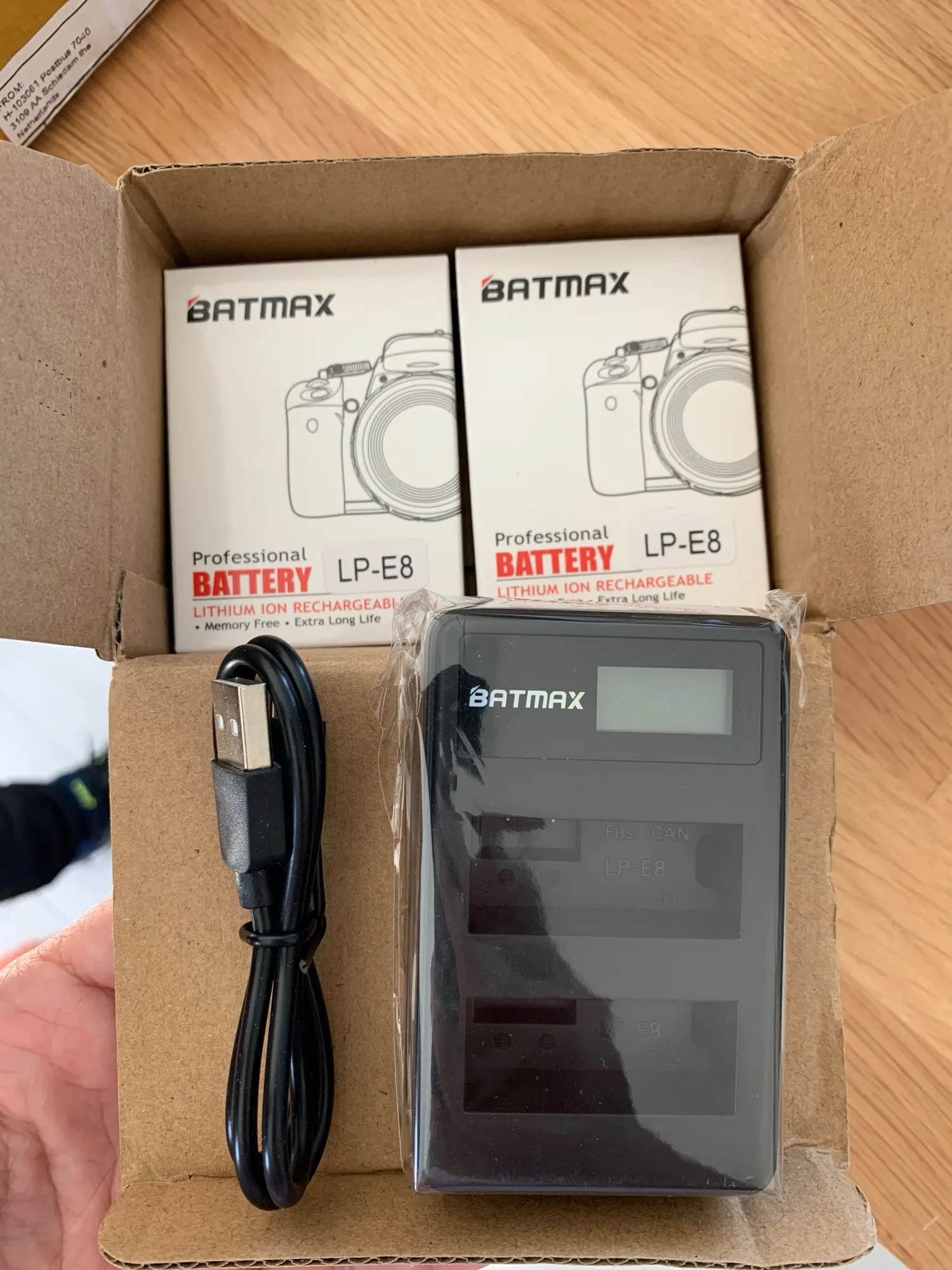 Очень хорошие батареи, включая оригинальную емкость canon. Двойное зарядное устройство также удобно!