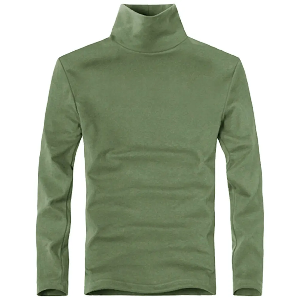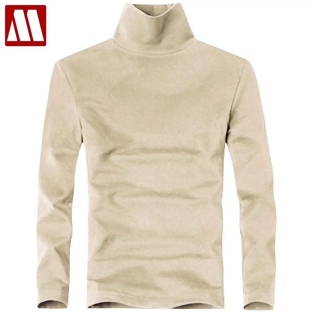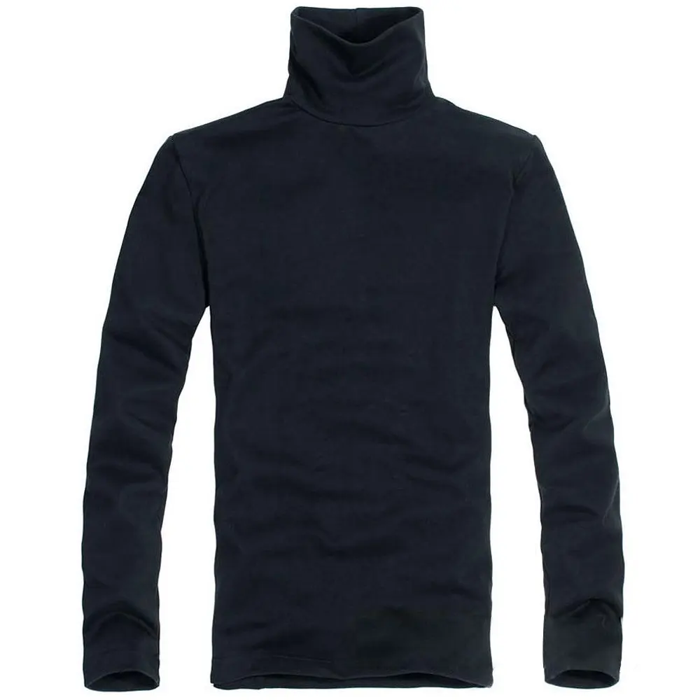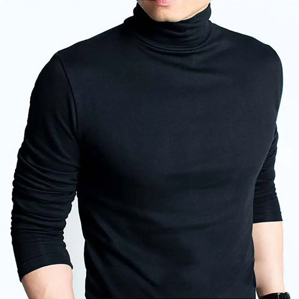 Футболка мужская эластичная с высоким воротом, модная брендовая однотонная Облегающая рубашка с длинными рукавами, повседневная майка размера плюс, на лето