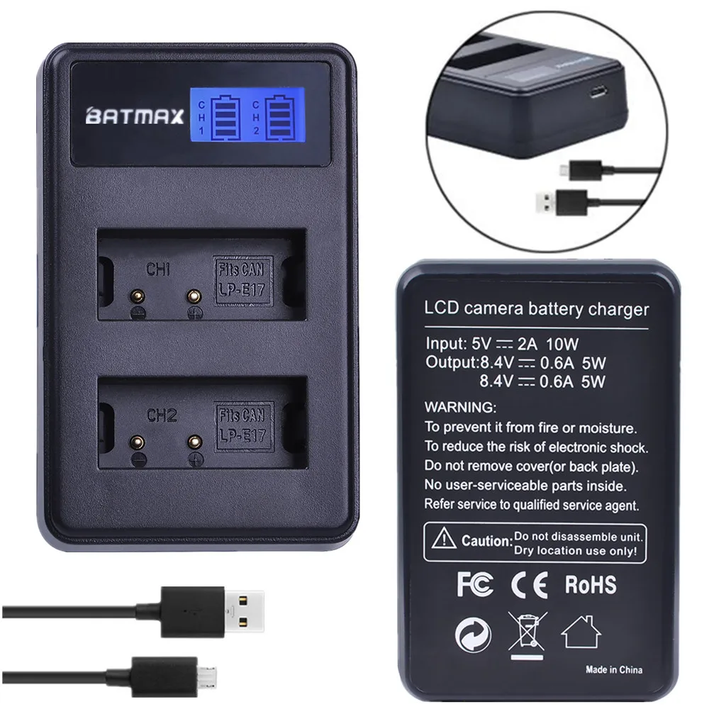 Бэтмакс1 шт. LP-E17 LPE17 LP E17 ЖК-дисплей USB зарядное устройство для Canon T6i 750D T6s 760D 200D M3 8000D Kissx8i EOS 800D