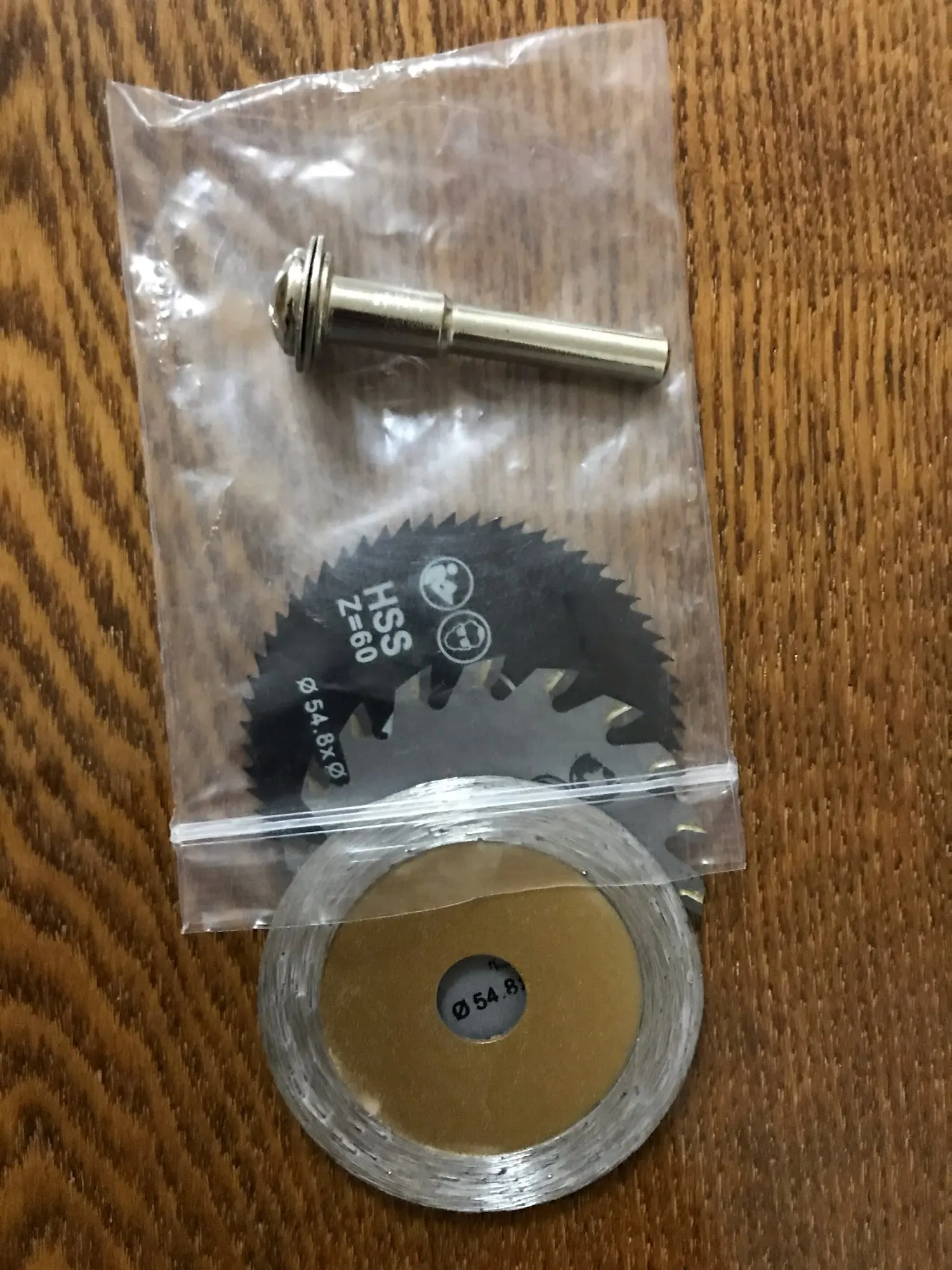 Пришло в целости и сохранности. Качество дисков хорошее. Черный диск режет дерево очень хорошо. Другие диски не проверял, но думаю, что с ними тоже все в порядке.
