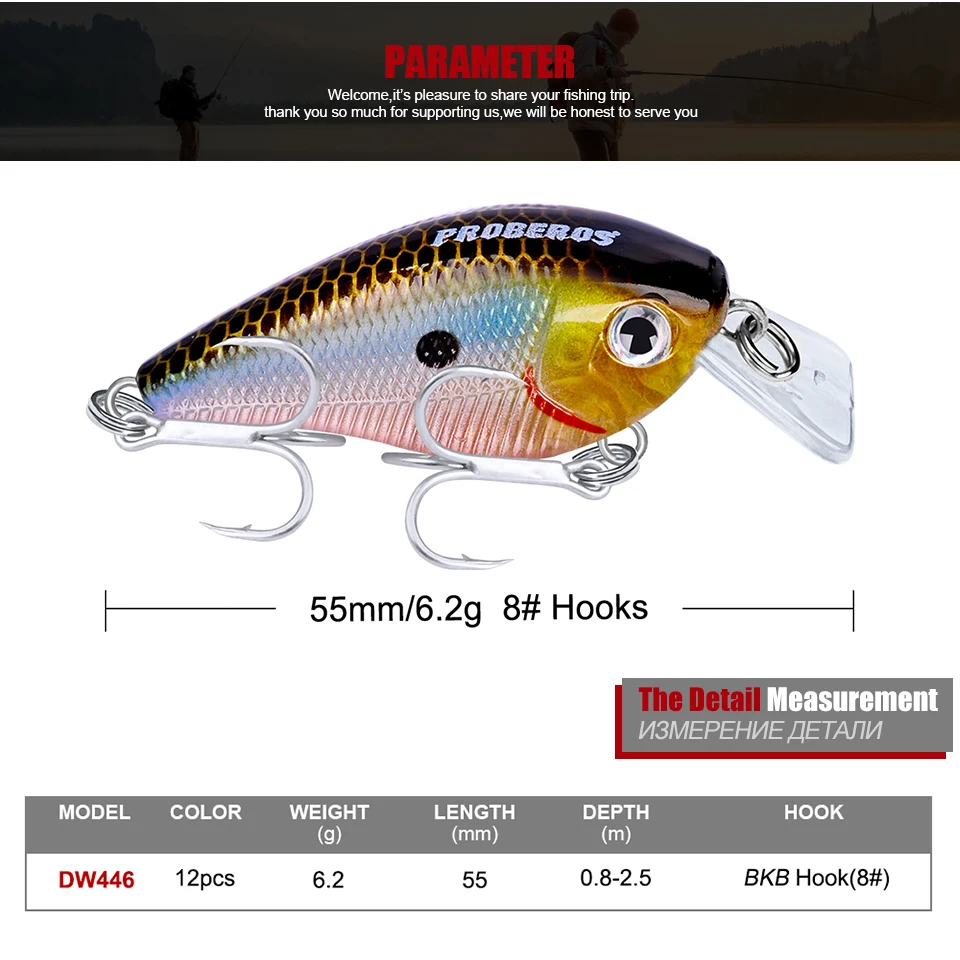 Приманка для рыбалки PROBEROS, 5,6 см, 6 г, мини-приманка для окуня, медленно плавающий, воблеры рыболовные снасти для окуня