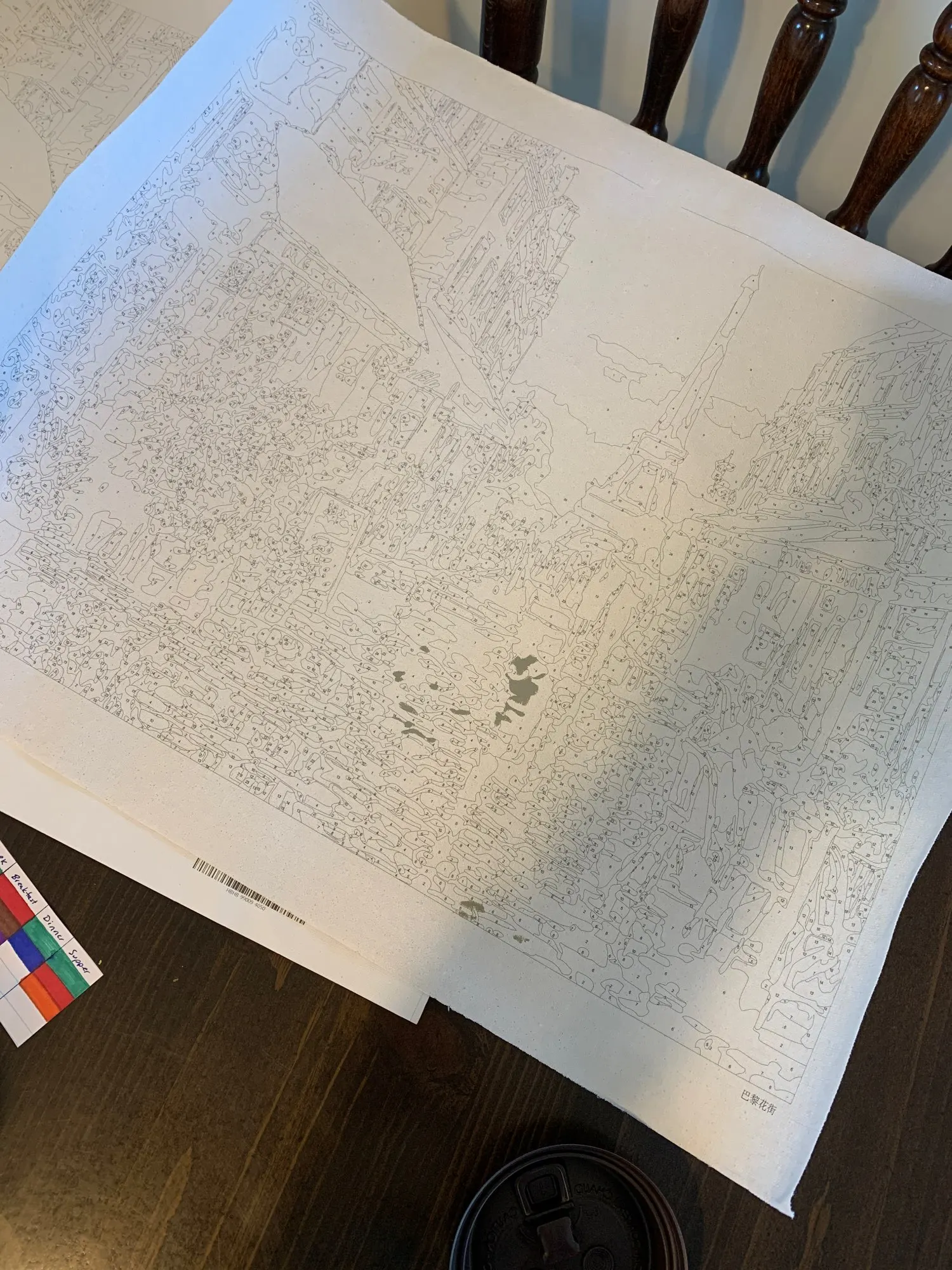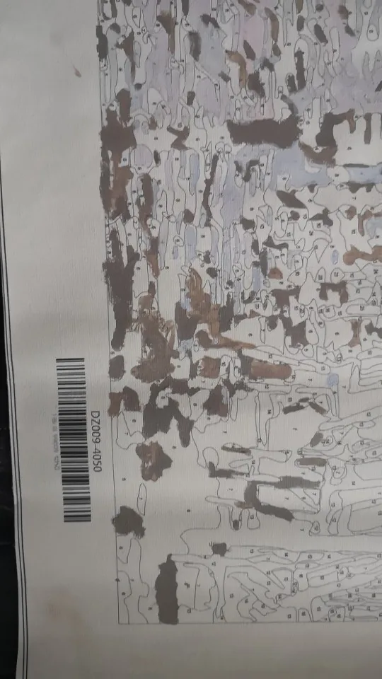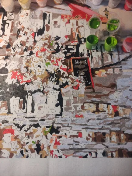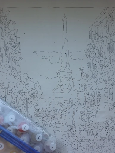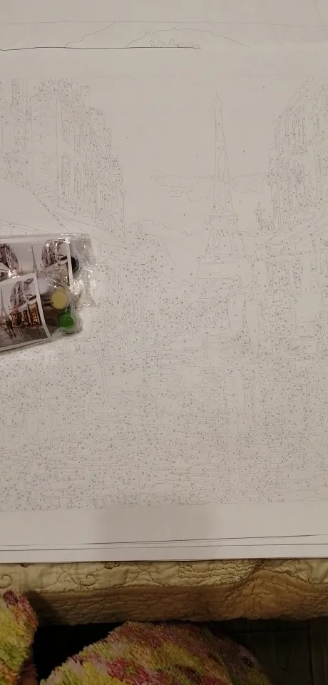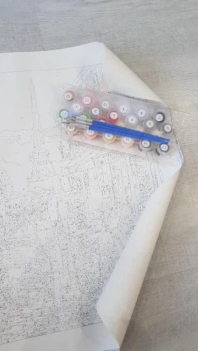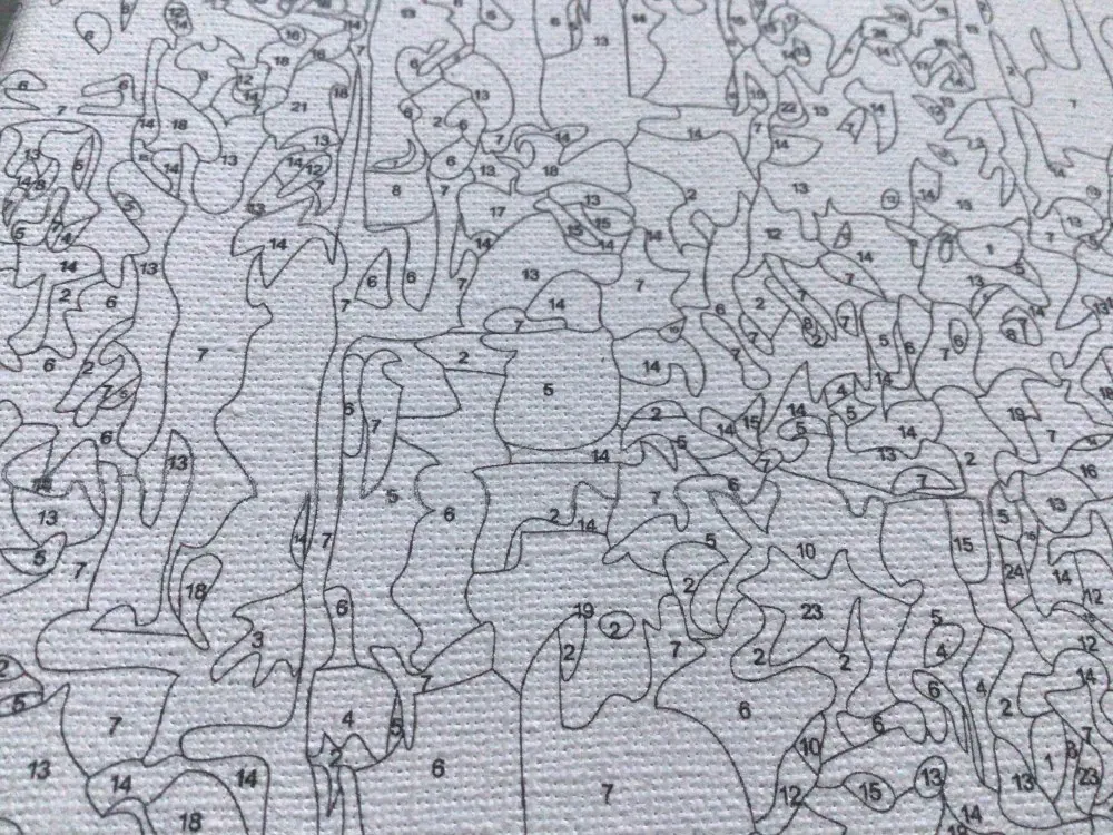 Заказ пришёл за 3 недели. Упаковка не очень, холст намотан на валик и сверху один целофан. Холст чудом не помялся. Детали достаточно мелкие. Линии и номера четкие и яркие. Цветов 24 шт, в комплекте 2 набора красок. Доп. схемы с номерами нет.