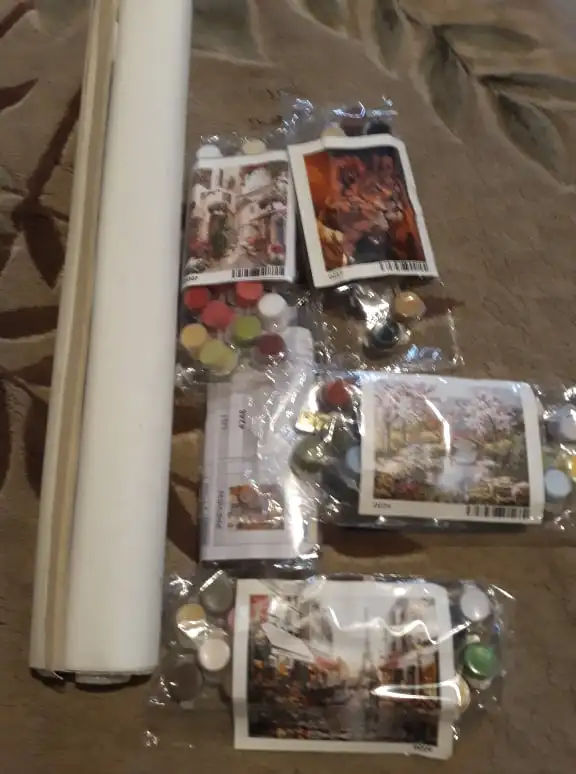 очень быстрая доставка в Киев, все целое, ничего не помялось, упаковано хорошо. в заказе было пять картин. наборы красок соответствуют холстам. кисти в наборах по 3 штуки, но очень разные, типа как повезёт. цена приятная, рекомендую.