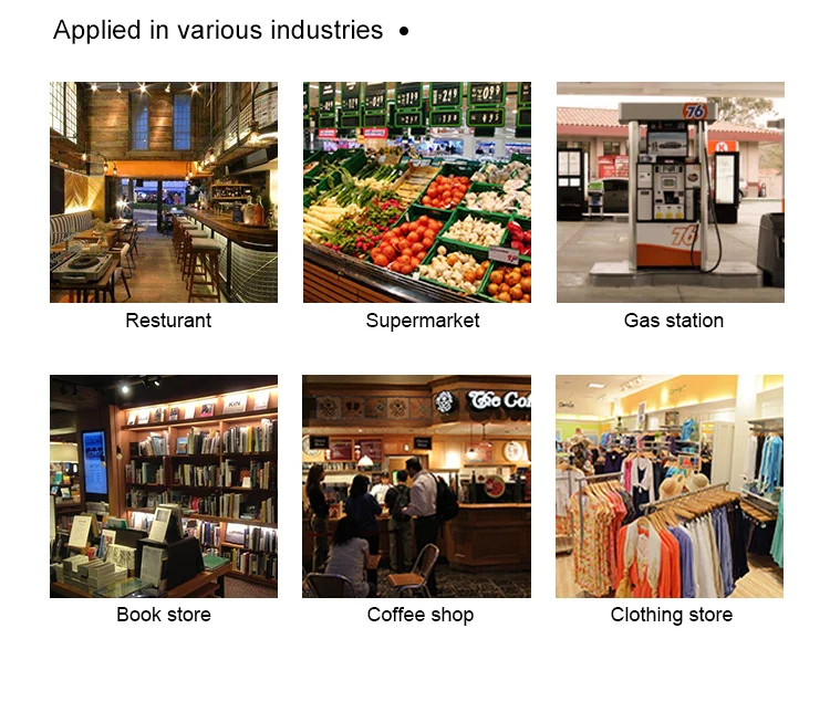 2. Пригодный для использования диапазон: применение цепных супермаркетов, ресторанов, удобных магазинов, магазинов одежды, помещений, пекарни, кассы, оплаты, входит в продажу сохраняет функцию управления бизнесом.