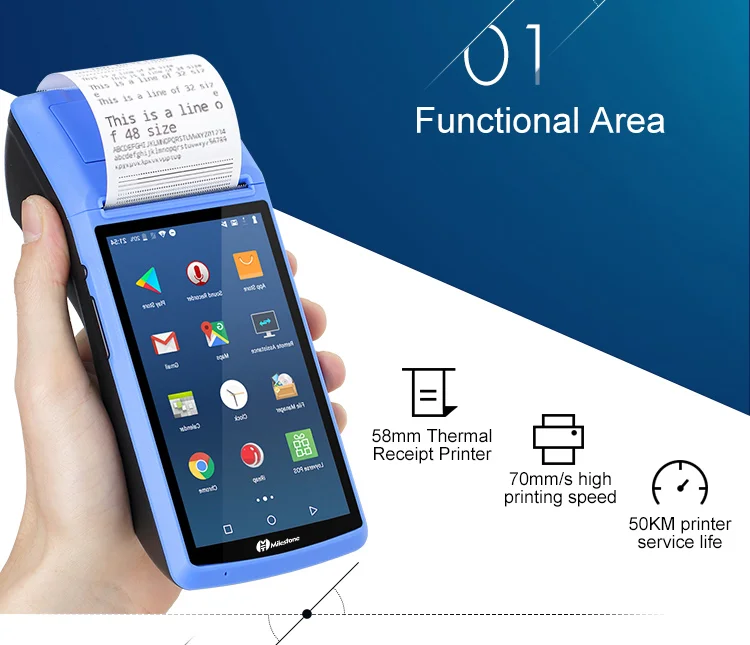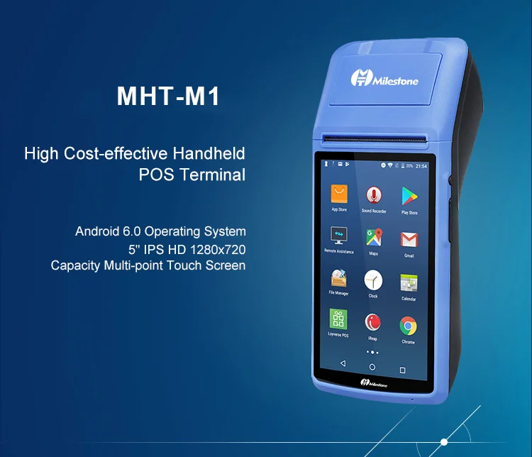 MHT-M1 Смарт POS машина, android 6,0 операционная система, 5-дюймовый сенсорный экран, супер долгое время работы в режиме ожидания емкость батареи is7800 mah, термопечать бумаги, камера 5 миллионов пикселей, china telecom 2g / 3g/ wifi, связь bluetooth 3,0/4,0. Теперь эта тонкая работа и высококачественная машина-лучший выбор на рынке.