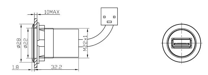 Металлический USB-разъем, 22 мм, с кабелем 60 см