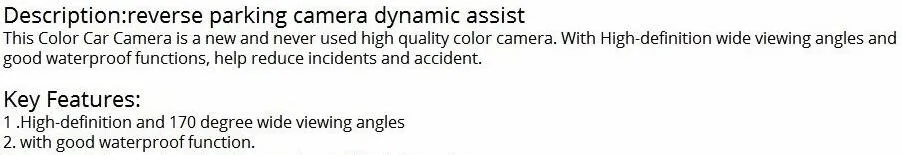 Наша компания специализируется на автомобильной камере заднего видаВ течение многих лет, и мы стремимся обеспечить высокое качество продукции, разумную цену и хорошее обслуживание для наших клиентов. Добро пожаловать к заказу.