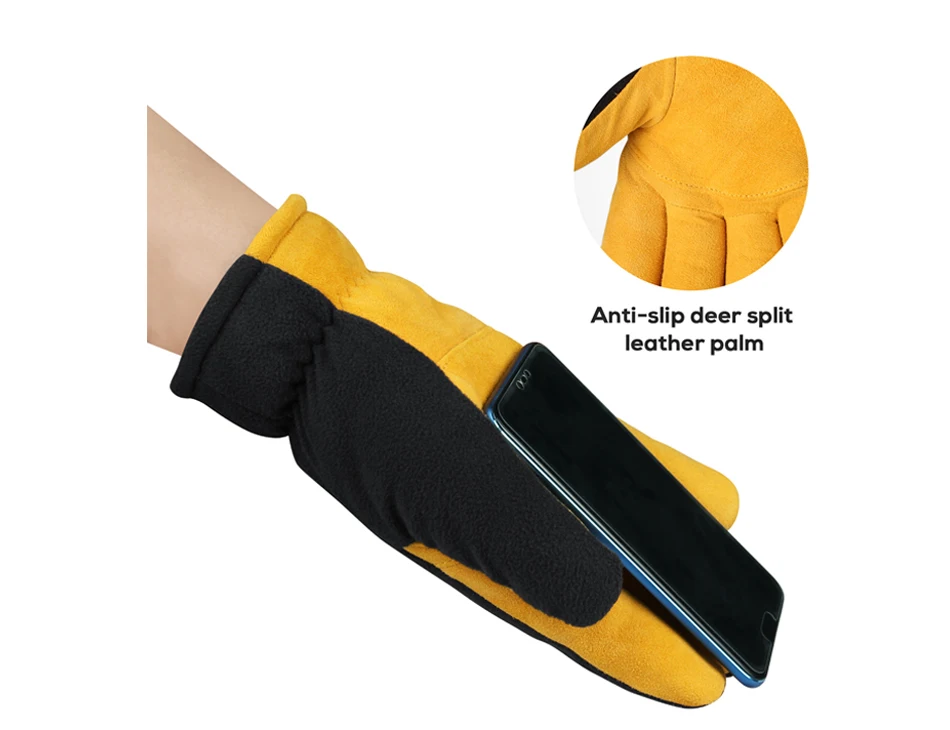 Зимние перчатки OZERO Deerskin, теплые рабочие перчатки для спорта на открытом воздухе, ветрозащитные перчатки для катания на лыжах, езды на мотоцикле