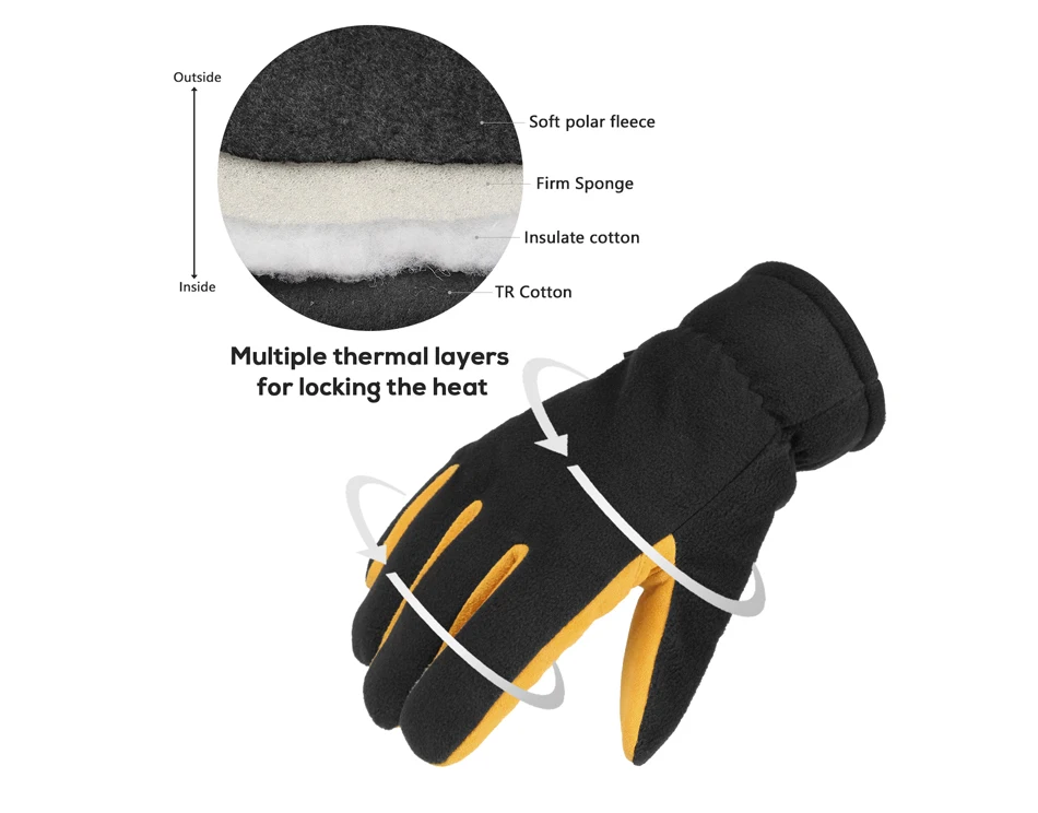 Зимние перчатки OZERO из оленьей кожи, уличные спортивные теплые рабочие перчатки с лопастями для снега, ветрозащитные велосипедные Мотоциклетные Перчатки