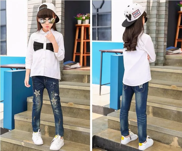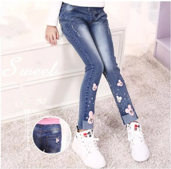 Осень 2022, детская одежда, джинсы для девочек, повседневные тонкие джинсы для девочек, джинсы для маленьких девочек, длинные джинсы для детей