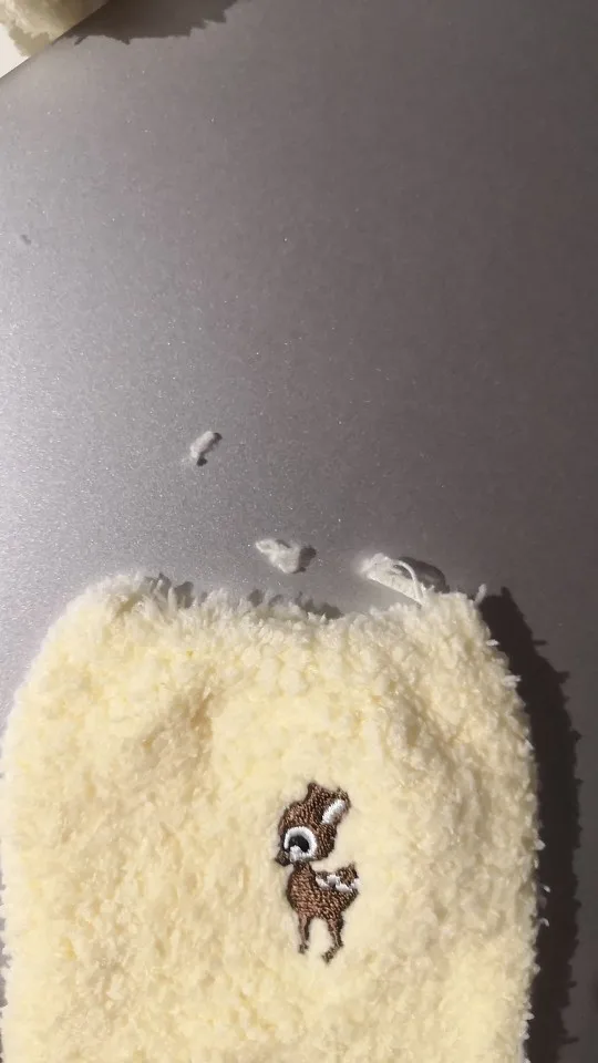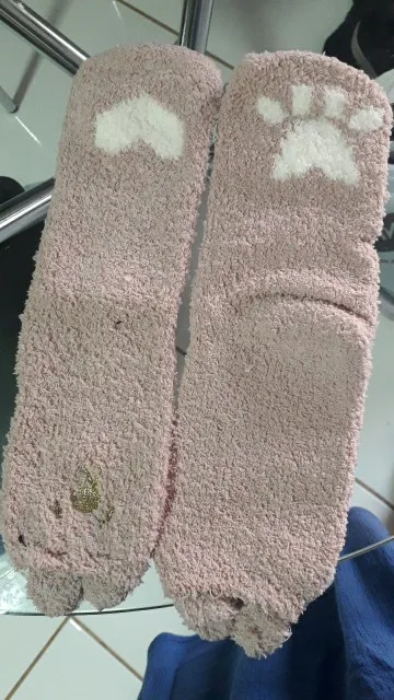 Носки точно такие же, как на картинке, но они грязные. У меня на ковре синие волокна...