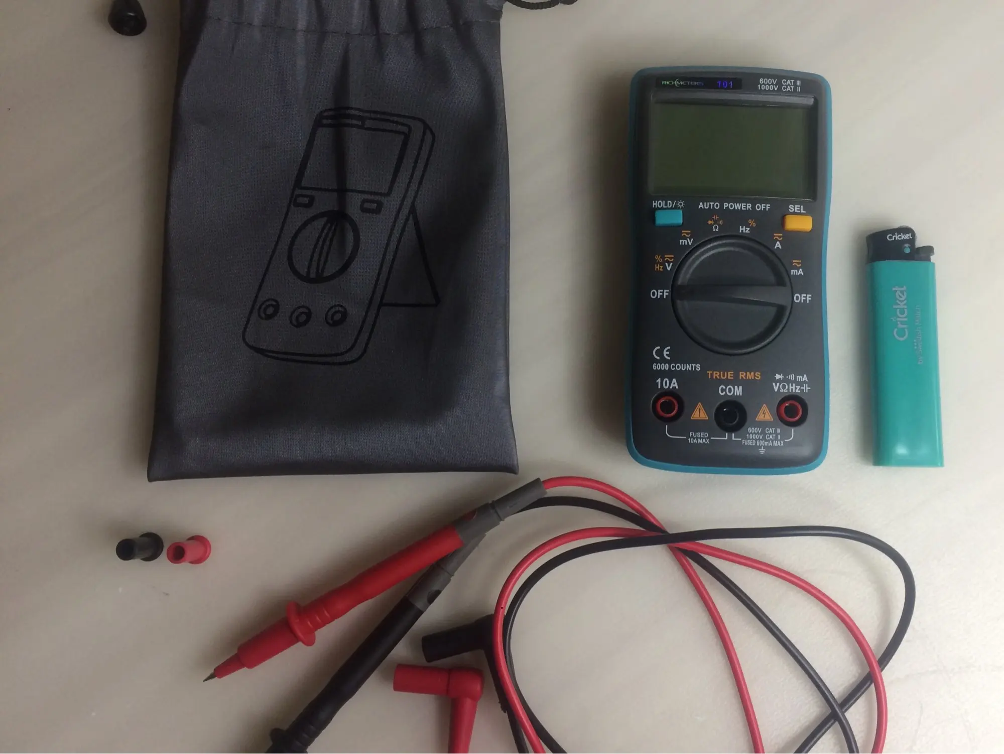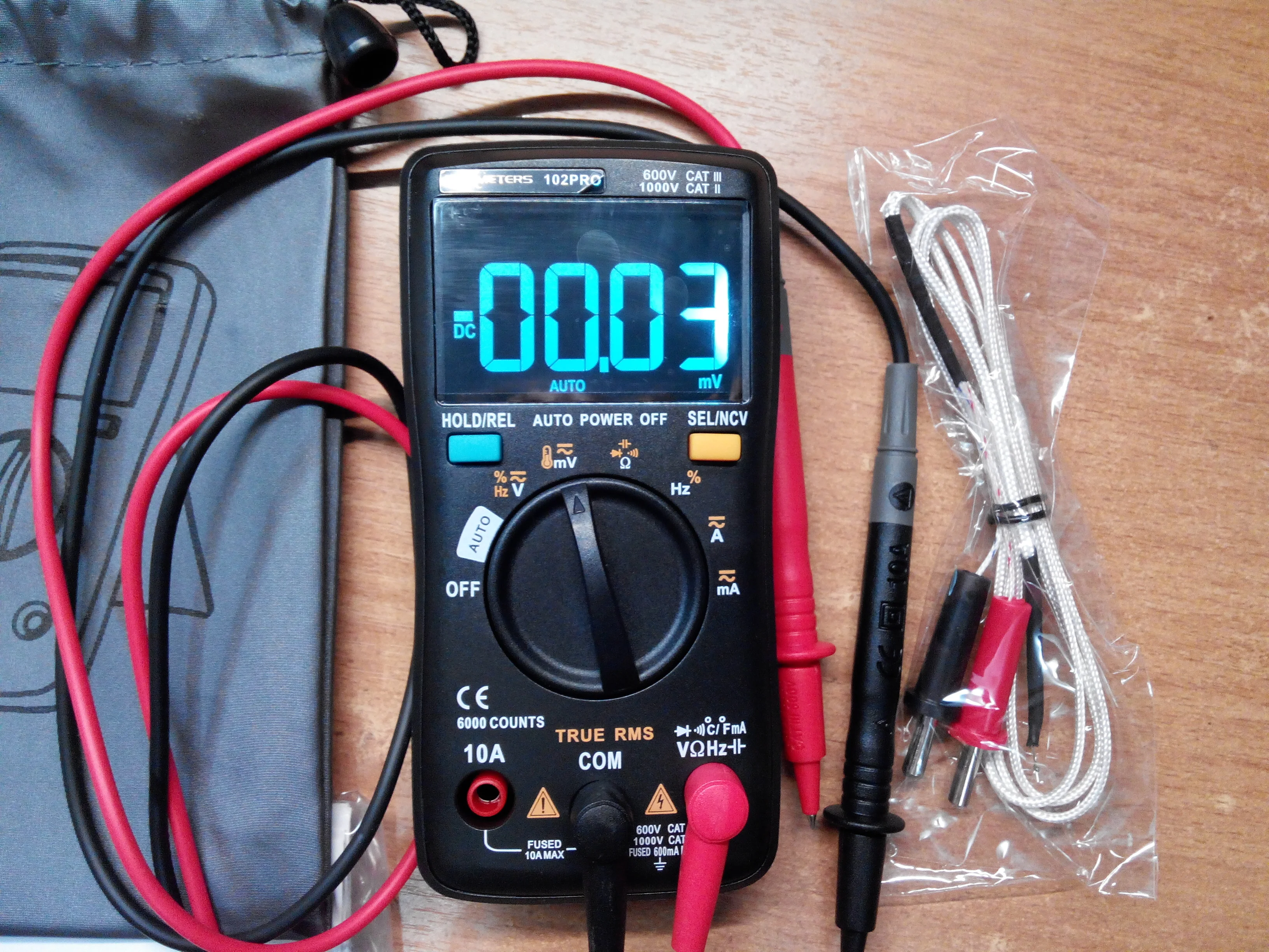 Прибор, если честно, на 4 из 5. Идущие в комплекте щупы оказались не очень удобными, заказал отдельно другие с тонкими длинными наконечниками+крокодилы, поскольку этими не везде на плате можно подлезть. Кроме того, в режиме прозвонки он немного подтупливает, не сразу срабатывает. Причём иногда мгновенно срабатывает, а иногда на секунду задержка. Плюсом является малый размер и чехол в комплекте
