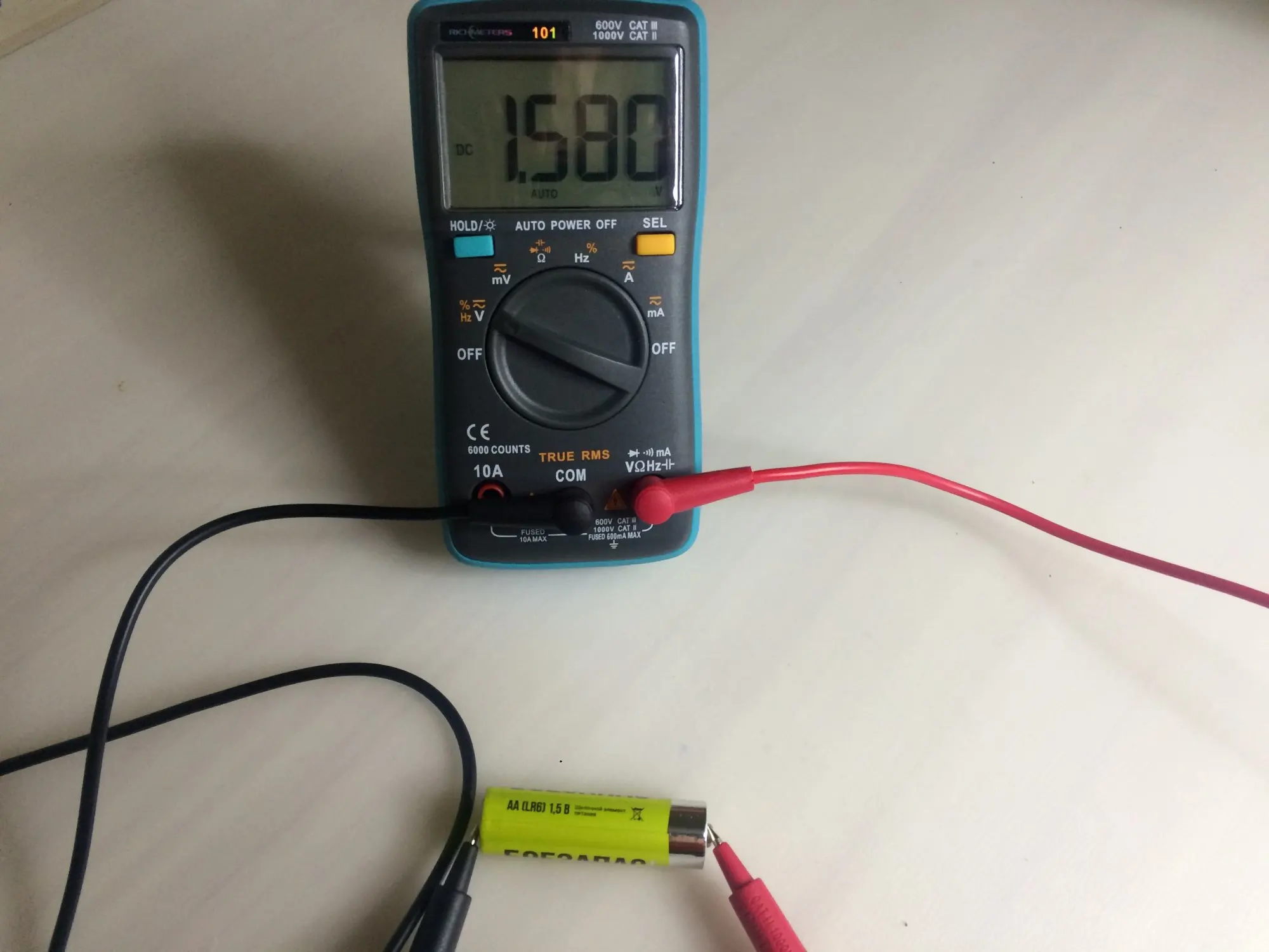 Мультиметр работает. В комплекте нет 2 мизинчиковых батареек. Рекомендую...