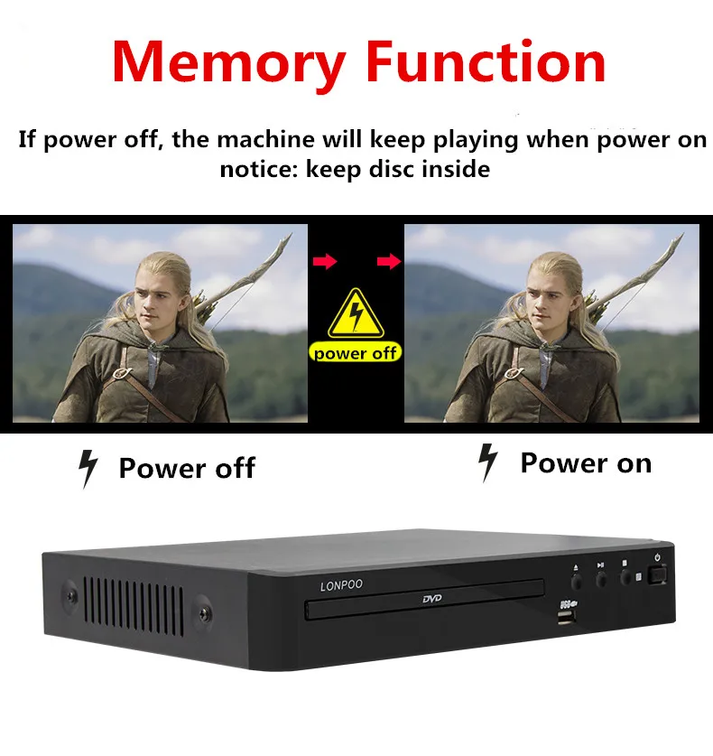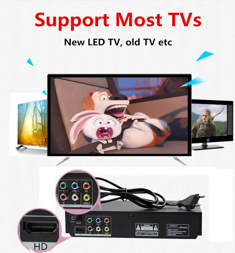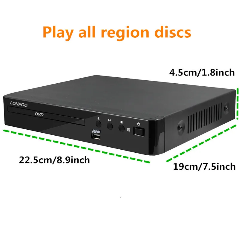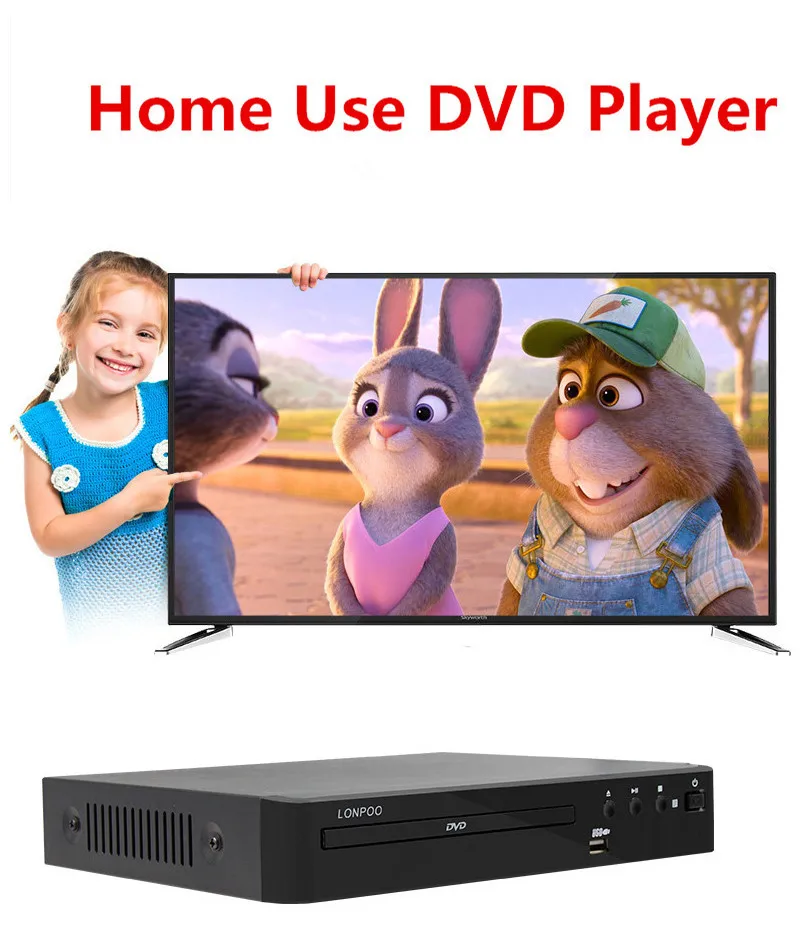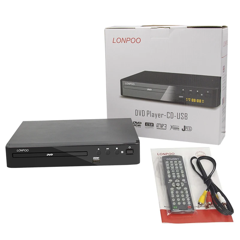 LONPOO Mini USB RCA DVD-плеер, несколько языков экранного меню, DVD CD RW-плеер, светодиодный дисплей, HDMI-совместимый плеер