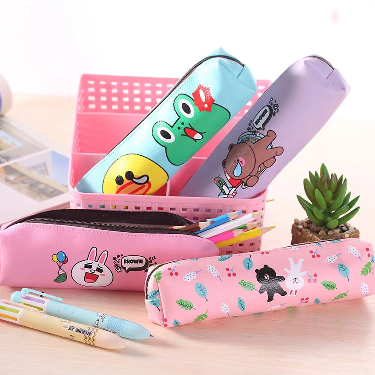 Сумка-Органайзер для карандашей из искусственной кожи, с забавными мультяшными животными, для девочек, школьные принадлежности, студенческий приз