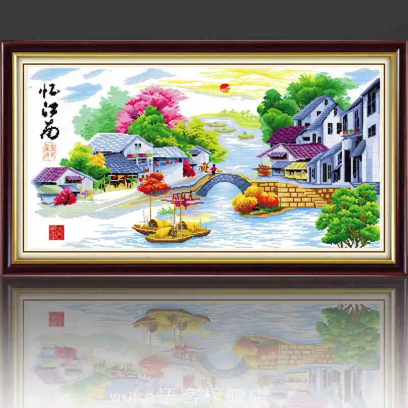 Вышивка QIANZEHUI, Набор для вышивки крестиком с изображением пейзажа воды своими руками, Воспоминания Юга