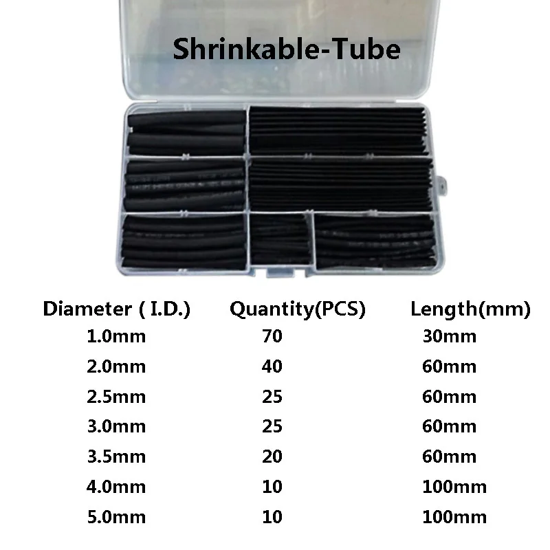 Термоусадочная трубка 200 шт.компл. 1 мм 2 мм 2,5 мм 3 мм 4 мм 5 мм