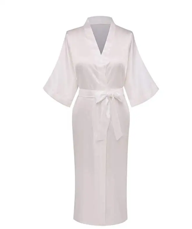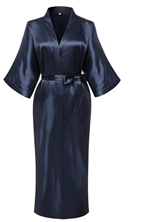 Женский халат-кимоно из искусственного шелка, длинное атласное нижнее белье, Классическая ночная рубашка, одежда для сна с поясом