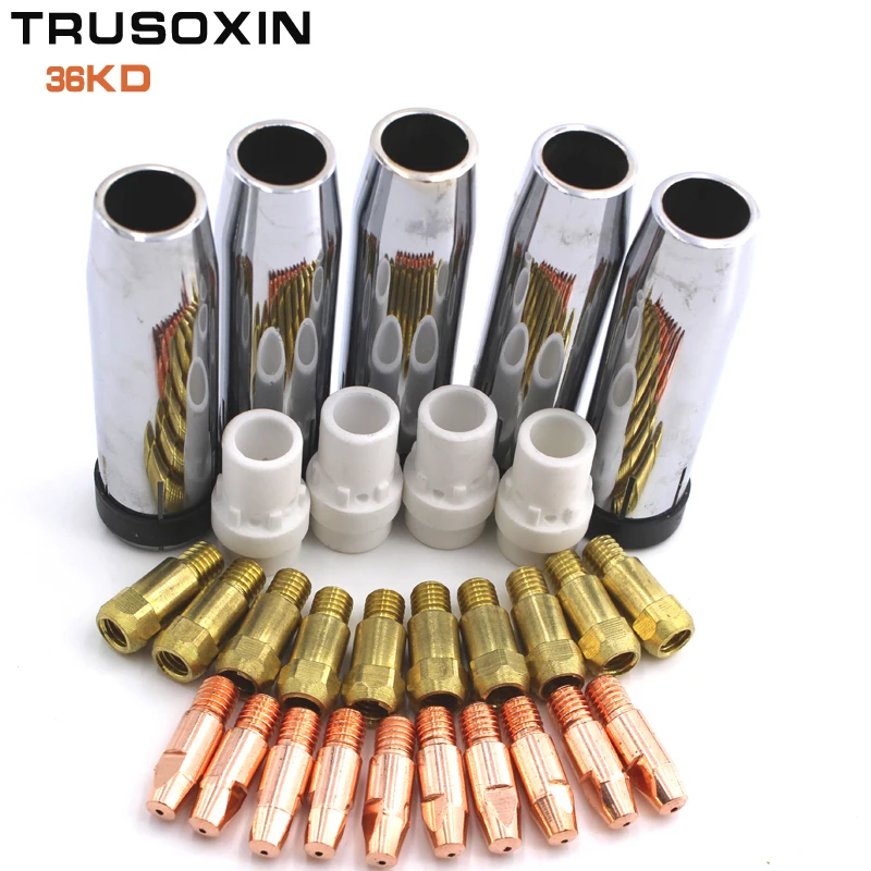 40 шт. расходных материалов = наконечник + электрод + Защитные чашки + паяльное газовое кольцо для гофонарь Binzel MIG MAG 36KD используется для сварочного аппарата MIG MAG