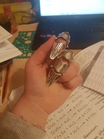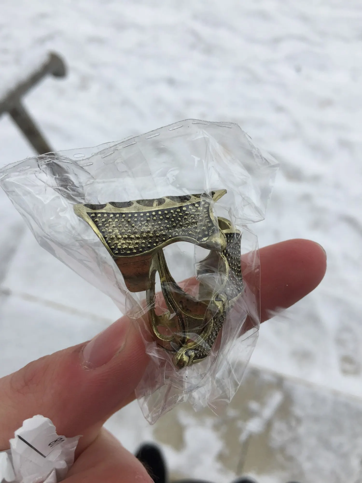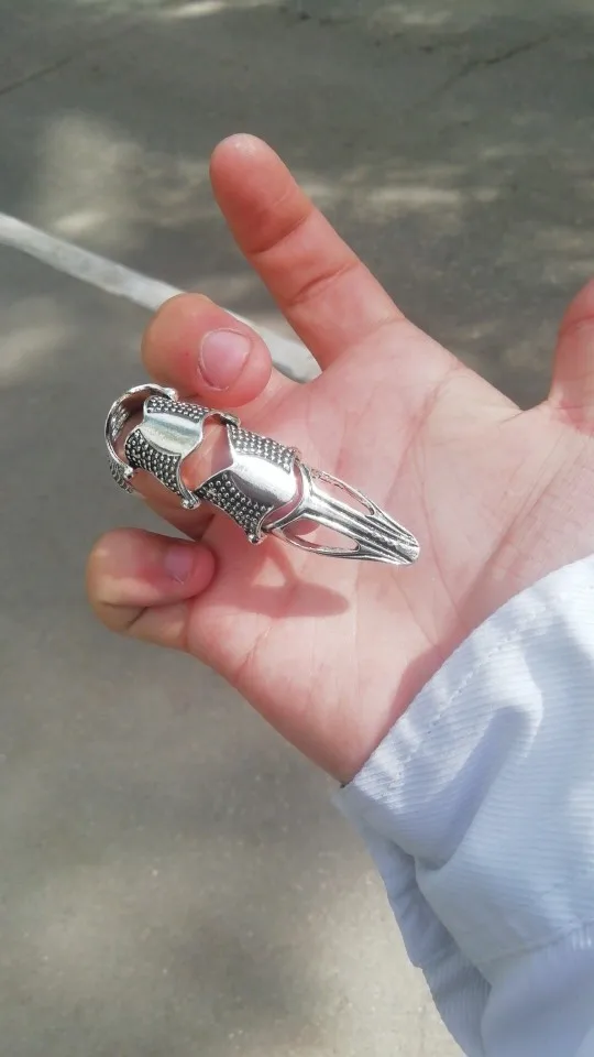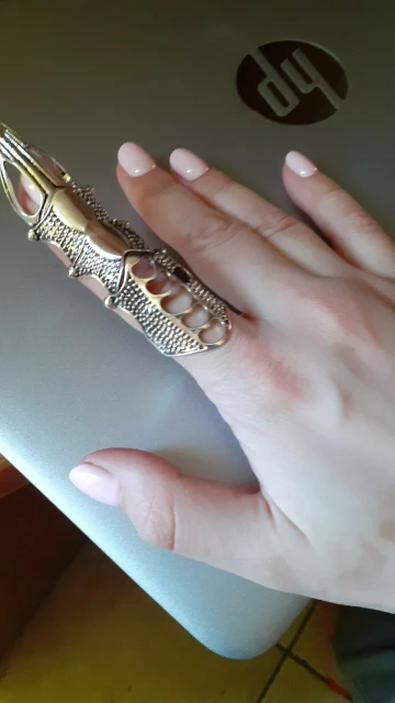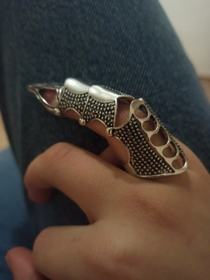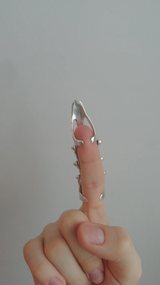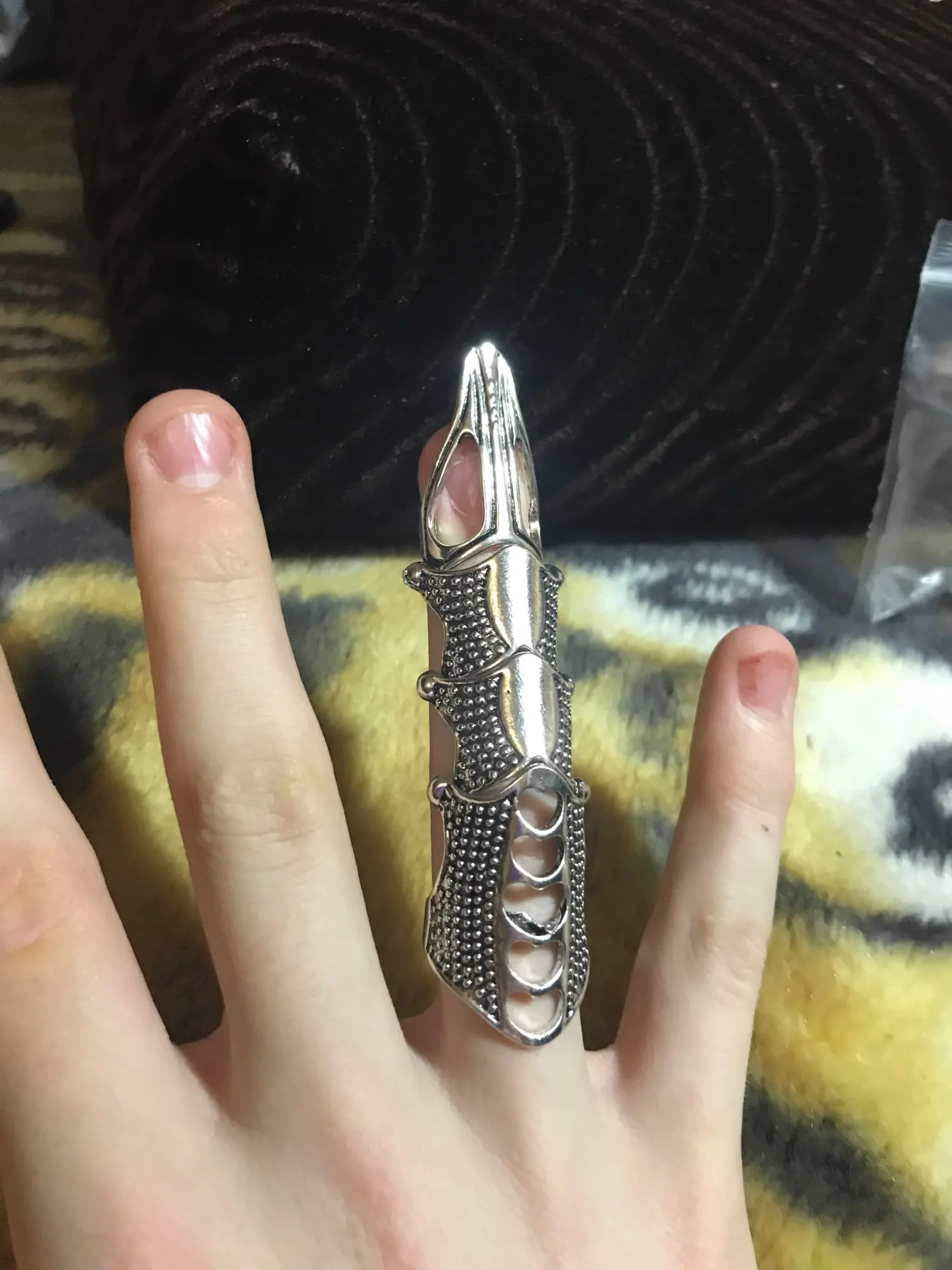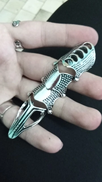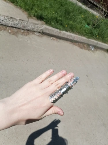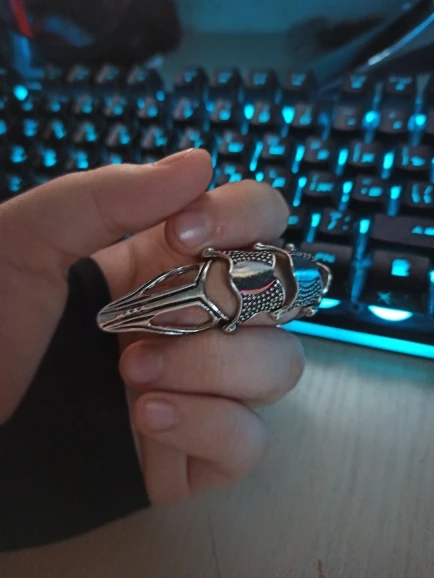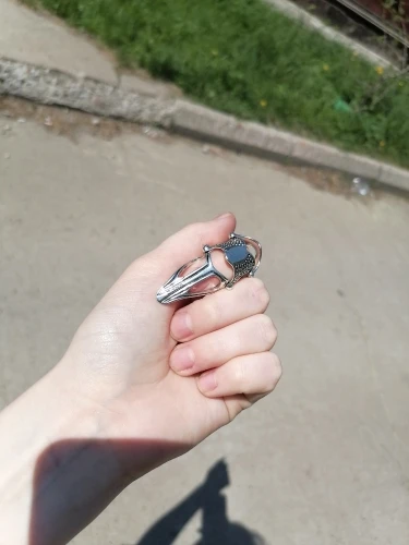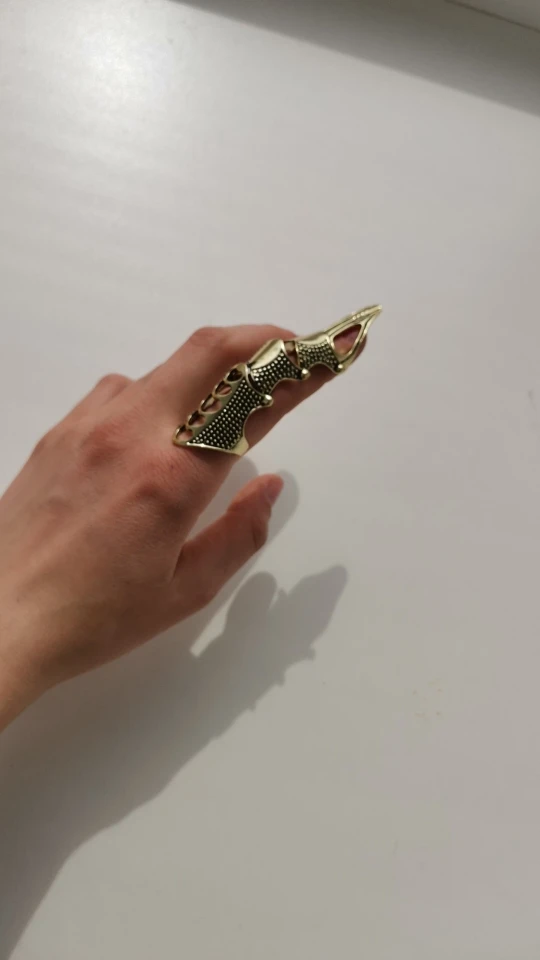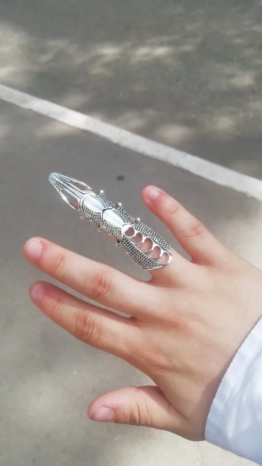 Кольцо немного съезжает,не очень хорошо фиксируется на пальце. Выглядит прикольно