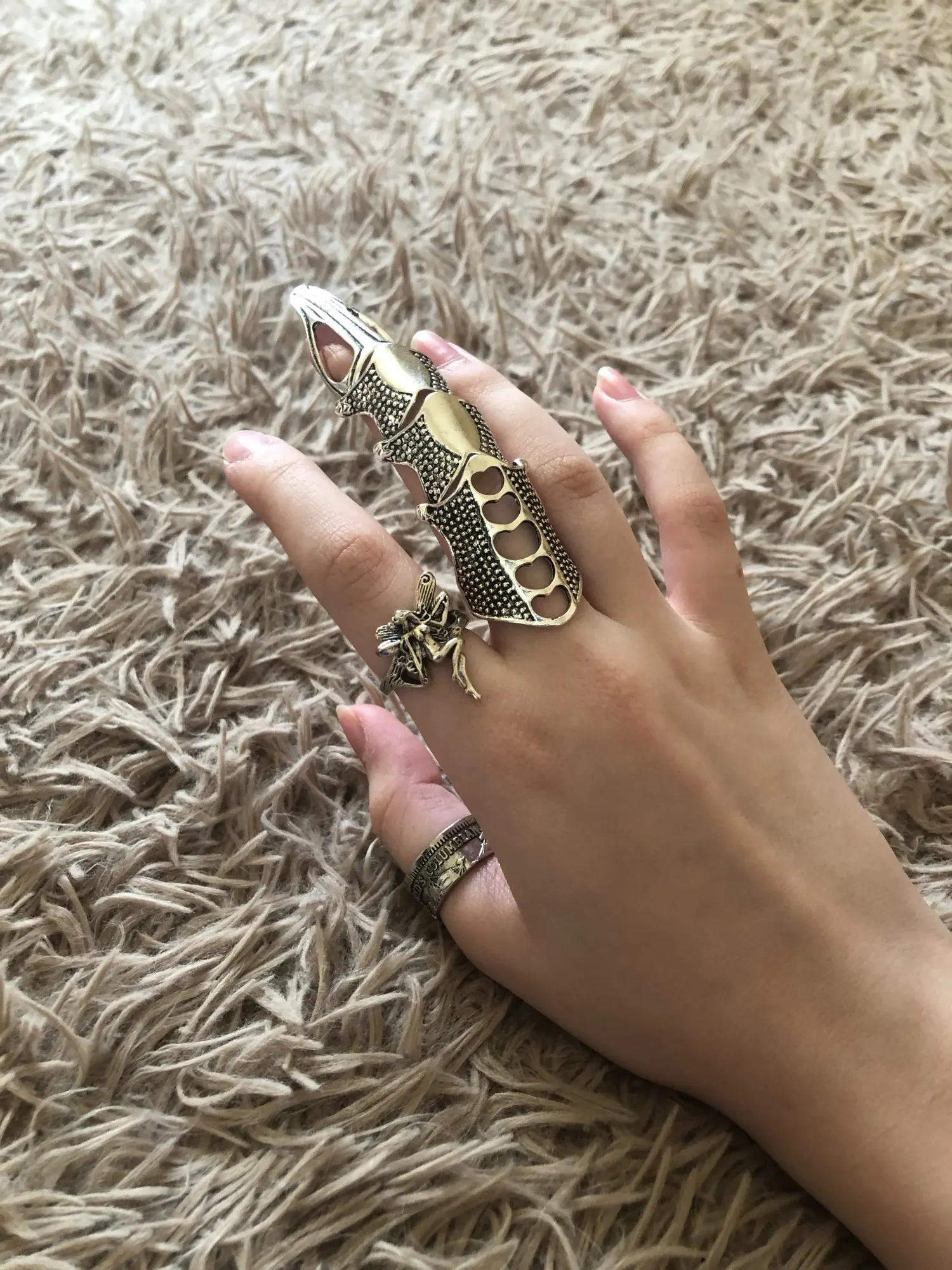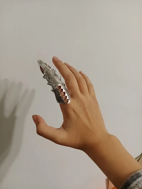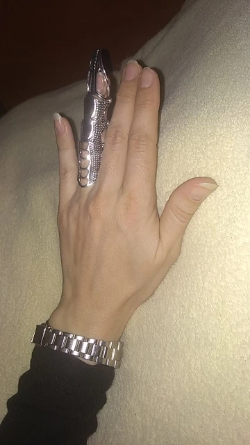 Как на фотографиях, кольцо регулируется и сочленяется, не беспокойтесь, когда вы хотите согнуть палец и т. Д.