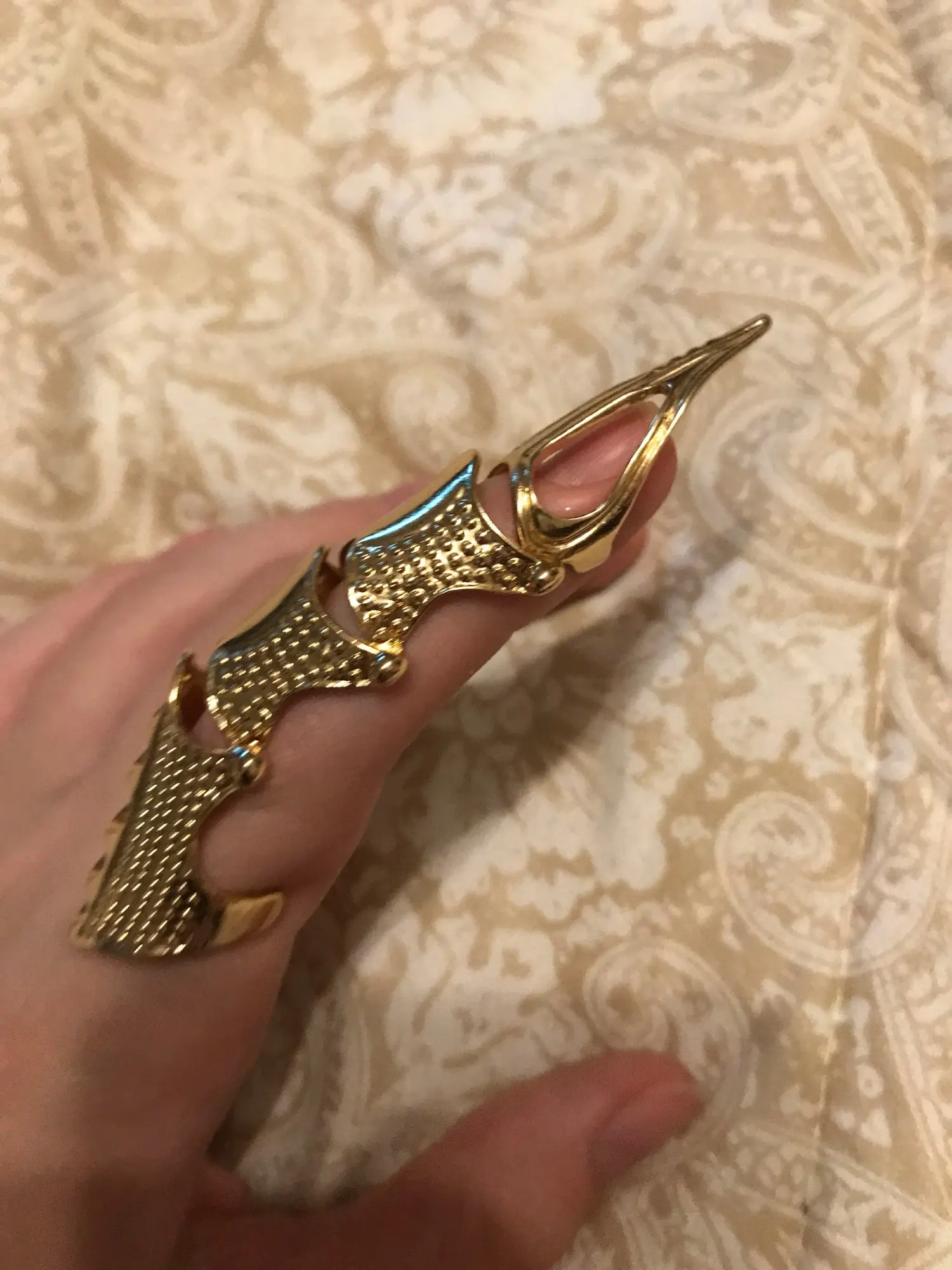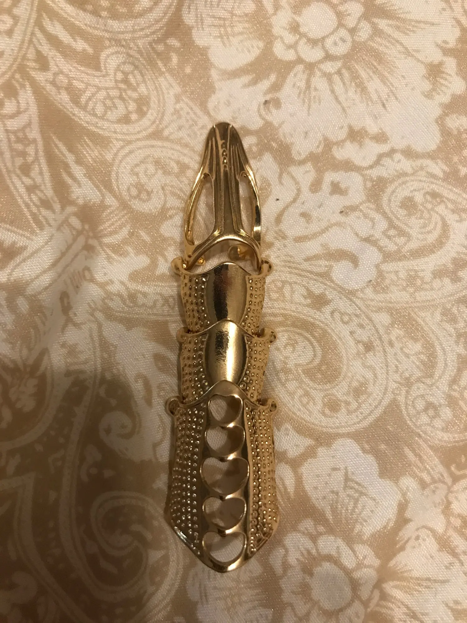 Приехало быстро(в Москву),того цвета(Gold).Ну,кольцо приехало разобранным,из-за чего пришлось самим собирать,НО,при собирании две части не соединялись,одна была шире другой,из-за чего они просто не могли соединиться и работать должным образом,но мы поняли,что железо-не самое прочное,и его согнули,потом уже две части сошлись.Но не смотря на этот недочёт,кольцо красивое,не имеет неприятного запаха,не заедает в механизме,подойдёт не на каждый палец,лично на мой длинный тонкий указательный палец наделось хорошо,кончик совсем не острый.Взяла для образа.Вообщем,мне нравится,спасибо!