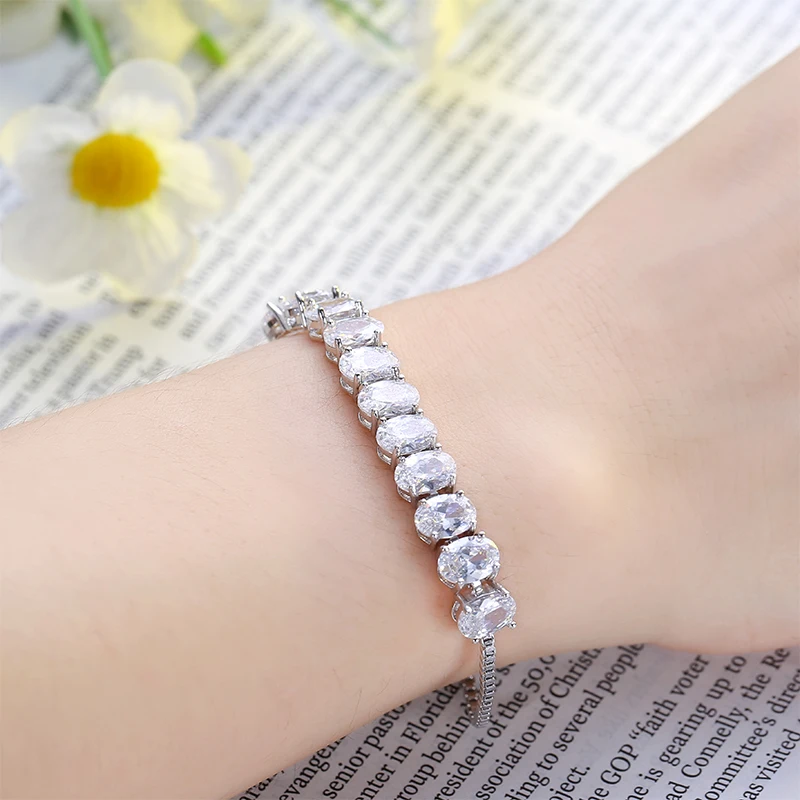 Женский браслет с цепочкой золотого цвета, белый овальный браслет с кубическим цирконием AAA, модные украшения для свадьбы