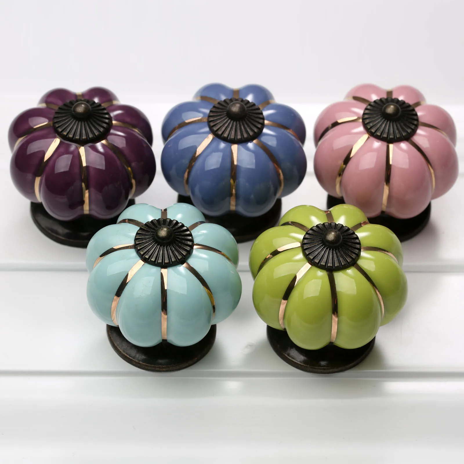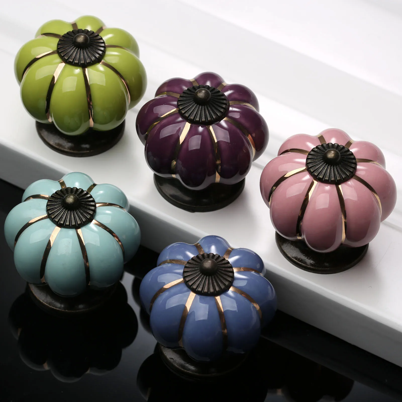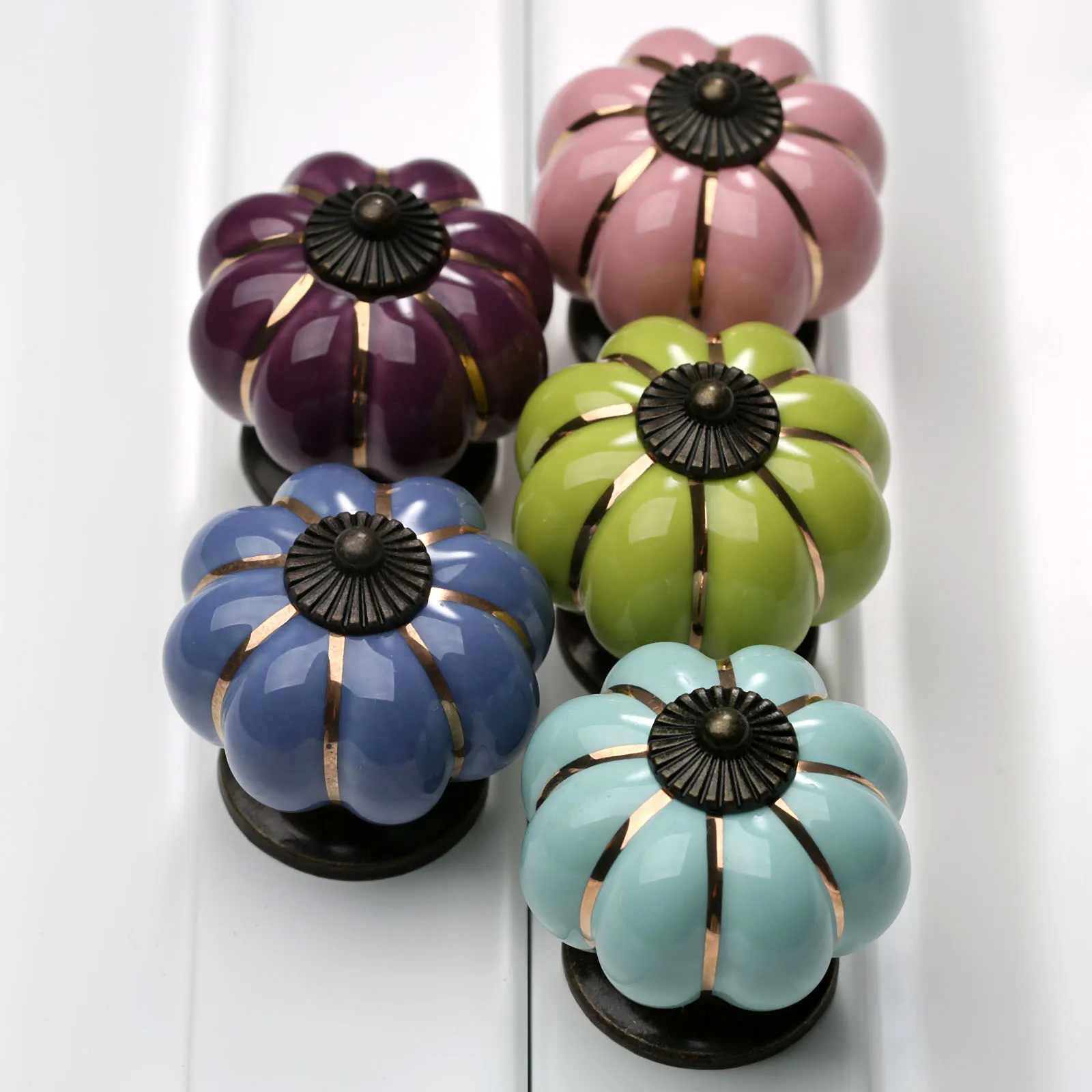 Винтажные керамические дверные ручки в виде тыквы, ручки и ручки для мебели, выдвижные ручки для кухонного шкафа